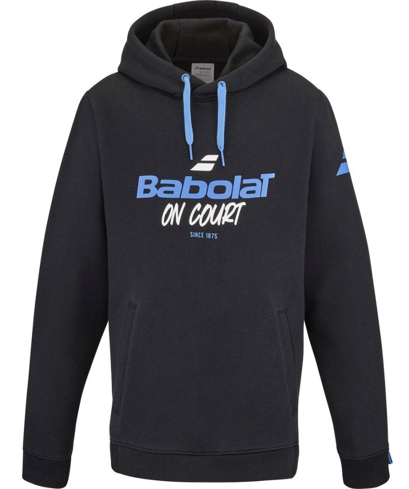 Мальчишечья толстовка Babolat Exercise Hood Sweat Junior - black/black. Изготовлена из приятного на ощупь и комфортного материала с высоким содержанием хлопка. Толстовка имеет капюшон со шнурками для лучшего прилегания. Спереди размещен карман типа кенгуру с доступом с обеих сторон. Рукава и низ завершены эластичными манжетами, что обеспечит хорошую посадку по фигуре.