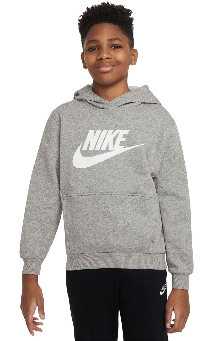 Мальчиковая толстовка Nike Kids Sportswear Club Fleece - dark grey heather/white. Классическая толстовка с капюшоном, выполненная из смеси хлопка и полиэстера, что обеспечивает высокий комфорт при носке. Внутренний материал с начесом дарит ощущение тепла. Магазин tennis-24.ru предлагает эту модель с одним передним карманом с доступом с обеих сторон. Рукава и низ толстовки выполнены из ребристого эластичного материала, обеспечивающего хорошую посадку по фигуре. Большое логотип производителя посередине толстовки.