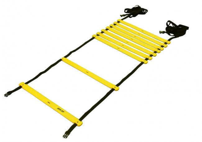 Тренировочная лесенка Pro's Pro Agility Ladder Succeed (4 м) - неоново-желтая. Лесенка состоит из 9 плоских перекладин с возможностью регулировки расстояния между ними. Прочно выполнена, идеально подходит для тренировки работы ног. В комплекте с чехлом. Длина: 4 метра; ширина: 50 см.
