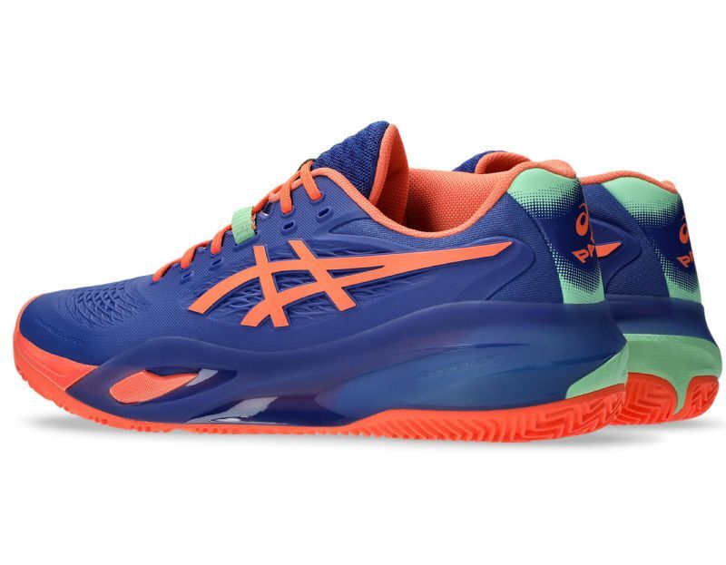 Мужские кроссовки для падела Asics Gel-Resolution X Padel - dark cobalt/vivid coral. Культовая модель Asics Gel-Resolution в падельной версии предлагает характерную для этой модели феноменальную стабильность и надежную защиту. Обновление на сезон 2025 добавляет к этому комфорт, больший чем когда-либо ранее. Верх выполнен из прочных и эластичных материалов. В наиболее подверженных повреждениям зонах усилен системой PGUARD для максимальной износостойкости. Частично выполненный из сетчатого материала язычок увеличивает вентиляцию. Магазин tennis-24.ru предлагает эту модель для настоящих ценителей падела. Переработанный стабилизирующий элемент DYNAWALL™ теперь простирается от внешней стороны и оборачивается вокруг пятки, обеспечивая еще лучшую поддержку стопы, особенно при боковых движениях. Настраиваемая система шнуровки DYNALACING™ облегчает подбор индивидуального, надежного и удобного уровня посадки, одновременно дополнительно и надежно удерживая стопу в обуви. Новинкой является использование признанной в беговой обуви Asics, а теперь переработанной для тенниса технологии FF BLAST™+ ECO. Эта амортизирующая пена с большой легкостью и мягкостью стратегически размещена под пяткой, обеспечивая отличное гашение вибраций и чрезвычайно эффективный возврат энергии при движении. Результатом является более легкий, упругий и динамичный бег. Конструкция обуви дополнена полноразмерной, цельной подошвой с протектором, специально разработанным для игры на падельных кортах.