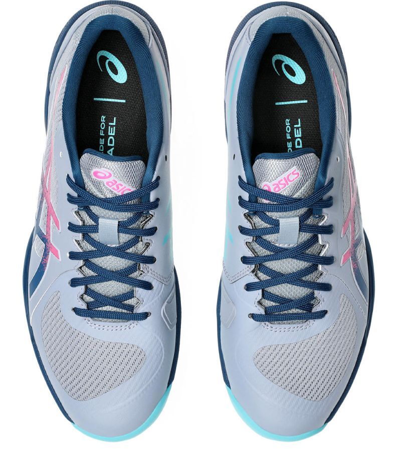 Мужские кроссовки для Падел Asics Solution Swift FF 2 Padel - grey blue/mako blue. Отличающаяся легкостью модель Solution Swift FF 2 позволяет добиться очень хорошего ускорения, особенно на первых этапах старта. Переработанный верх с большими зонами из сетки обеспечивает отличную воздухопроницаемость. Магазин tennis-24.ru предлагает эту модель с многочисленными усилениями в уязвимых местах, что увеличивает прочность. Передняя часть подошвы оснащена системой PGUARD для лучшей износостойкости и защиты от механических повреждений. Средняя подошва из энергетической пены FLYTEFOAM гарантирует первоклассную амортизацию и отличный возврат энергии при отталкивании. Также применена технология TRUSSTIC, поддерживающая стабильность. Обувь имеет подошву, предназначенную для игры на кортах для падела.