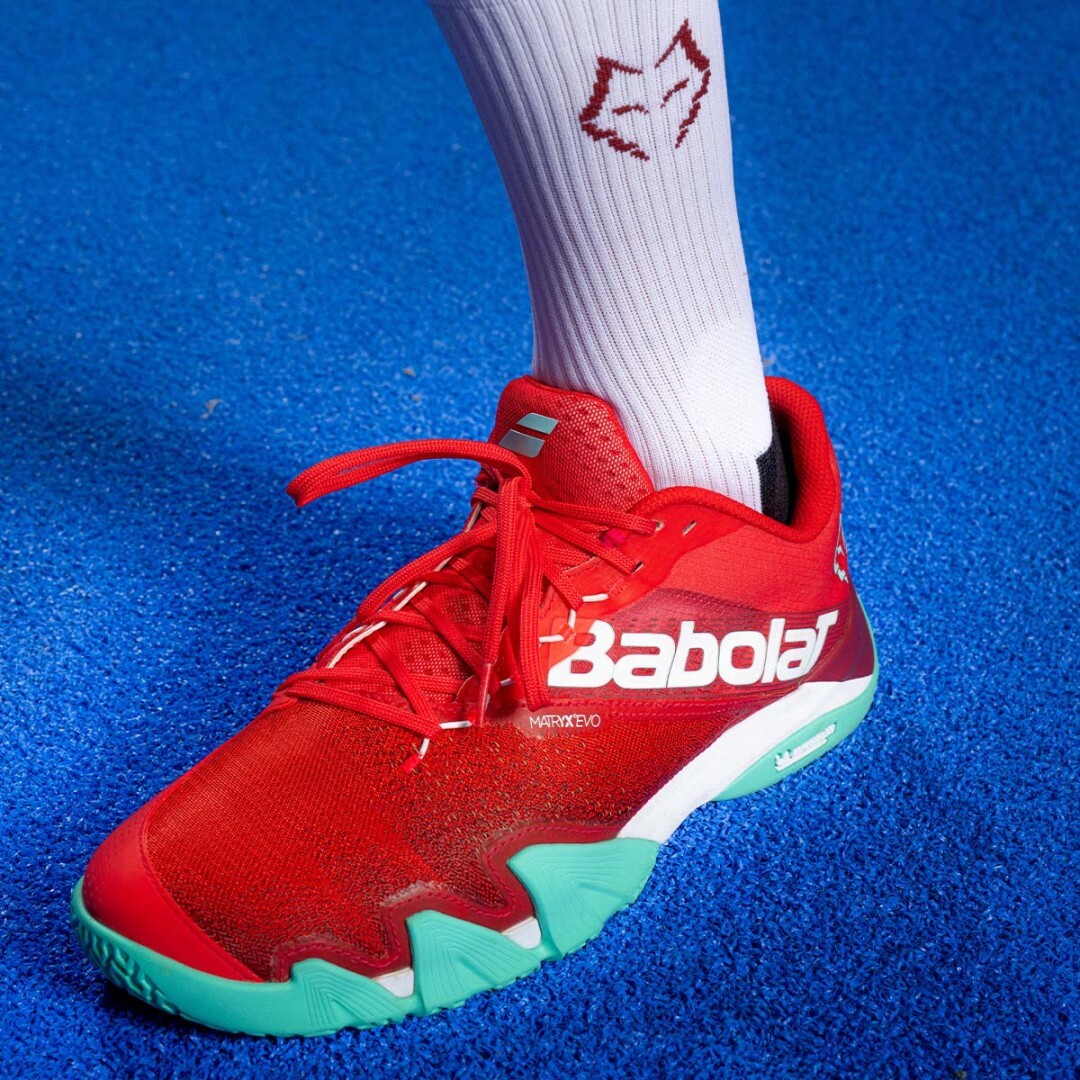 Мужские кроссовки для Падел Babolat Jet Premura 2 Lebron - red/electric green. Разработаны специально с учетом особенностей движений во время игры в падел и неоднократно выбирались как "Лучшая обувь для падела". Низкий вес обеспечивает максимальную динамичность и маневренность на корте. Верхняя часть имеет две обширные вентиляционные зоны из прочного сетчатого материала, а в критических местах усилена четырьмя жесткими ремнями для лучшей поддержки стопы. Очень хорошая стабилизация и амортизация. Магазин tennis-24.ru предлагает эту модель, оснащённую системой компрессии KPRS-X с пеной EVA под пяткой для отличной амортизации. Увеличенная толщина внешней подошвы Michelin обеспечивает еще большую долговечность, а улучшенный протектор позволяет идеально сцепляться с искусственной травой или песком. Дополнительно стелька Ortholite помогает уменьшить появление неприятных запахов. Выбор ведущего паделиста Хуана Леброна, с логотипом испанца на заднике.