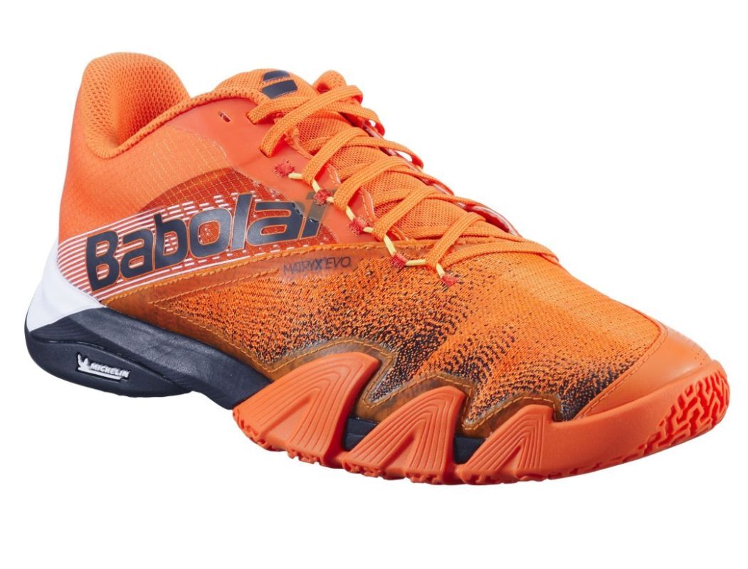 Мужские кроссовки для Падел Babolat Jet Premura 2 - vibrant orange. Разработаны специально с учетом особенностей передвижения во время игры в падел и неоднократно выбирались как "Лучшая обувь для падела". Низкий вес обеспечивает максимальную динамичность и маневренность на корте. Верхняя часть имеет две обширные вентиляционные зоны из прочного сетчатого материала, а в критических местах усилена четырьмя жесткими полосами для лучшей поддержки стопы. Очень хорошая стабилизация и амортизация. Магазин tennis-24.ru предлагает эту модель с системой компрессии KPRS-X: расположенная под пяткой пена EVA обеспечивает отличную амортизацию. Увеличенная толщина внешней подошвы Michelin гарантирует еще большую долговечность, а улучшенный протектор позволяет идеально сцепляться с искусственной травой или песком. Дополнительно стелька Ortholite помогает уменьшить появление неприятных запахов.