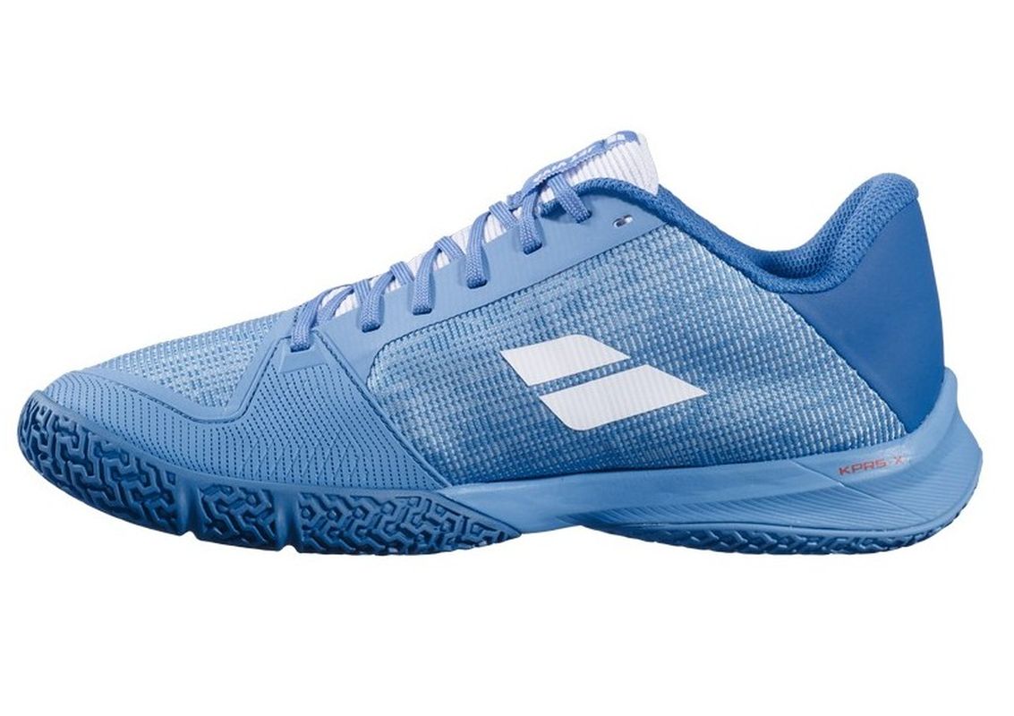 Мужские кроссовки для Падел Babolat Jet Viva - blue moon/seaport. Легкая и удобная модель с подошвой Michelin, созданной специально для игры на искусственной траве. Сетчатый верх обуви легкого веса обеспечивает хорошую воздухопроницаемость и динамику движений на корте. В ключевых местах он усилен резиновыми вставками. Язычок с частично интегрированной конструкцией обеспечивает хороший уровень поддержки стопы, надежно удерживая ее в обуви во время резких движений. Технология KPRS-X под пятой гарантирует подходящую амортизацию. Специальные надрезы и канавки в наружной подошве 360 Flex максимально увеличивают сцепление.