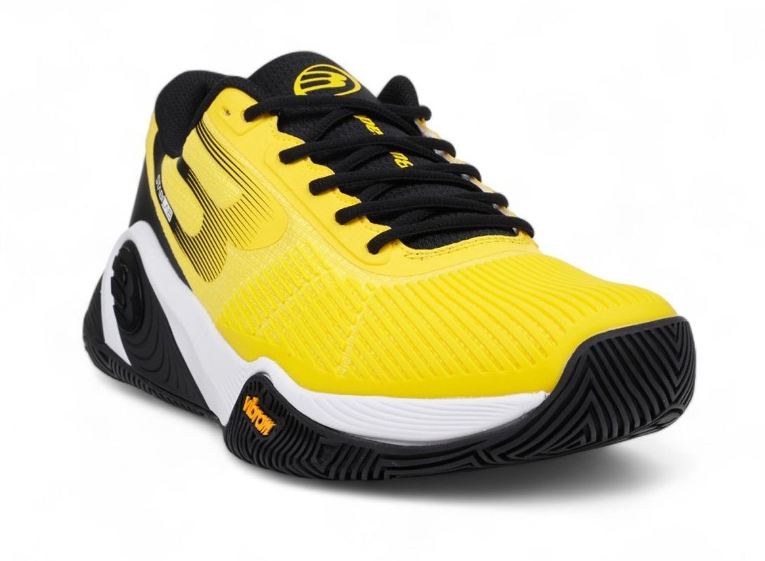 Мужские кроссовки для Падел Bullpadel Vertex Vibram 25V - amarillo. Невероятно комфортная модель, обеспечивающая отличную производительность при частой и интенсивной игре в падел. Легкий трикотажный верх с микроперфорацией обеспечивает высокую воздухопроницаемость. Резиновые усиления носка и уязвимых боковых зон увеличивают прочность. Частично интегрированный язычок обеспечивает очень хорошую поддержку стопы, а дополнительный стабилизатор в средней подошве обеспечивает отличную торсионную стабильность. Относительно широкий крой подойдет для высокого подъема стопы. Магазин tennis-24.ru предлагает эту модель для настоящих ценителей падела. Подошва, изготовленная из двойной плотности EVA, предлагает первоклассную амортизацию. Внешняя подошва, разработанная при участии мирового лидера по производству подошв Vibram, имеет гибридную конструкцию — состоит частично из елочки и зон, увеличивающих сцепление и износостойкость, что обеспечивает идеальную тягу. Дополнительно оснащена элементом CATAPULT, который действует как система поддержки возврата энергии для следующего удара. Другие технологии: LATERAL MOVEMENT, BPS STABILIZER, ORTHOLITE. Модель выбрана одними из лучших паделистов мира, представляющих бренд Bullpadel: Хуаном Телло и Феде Чинготто.