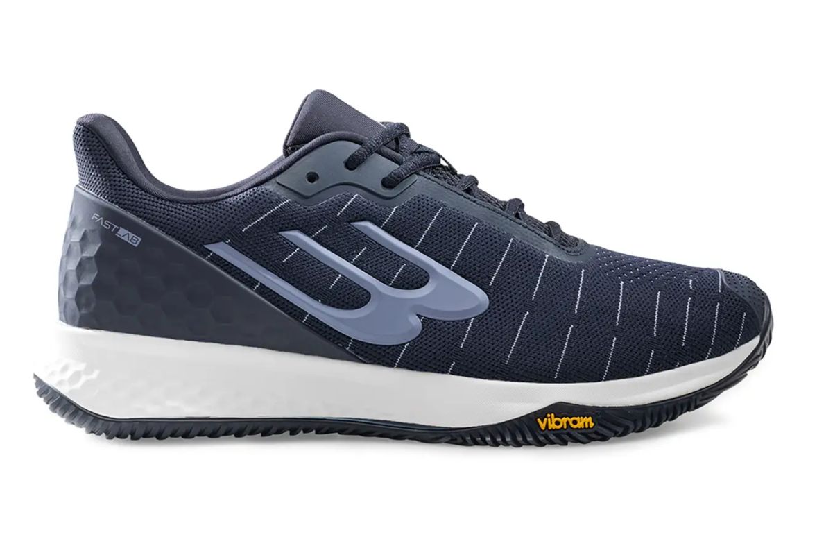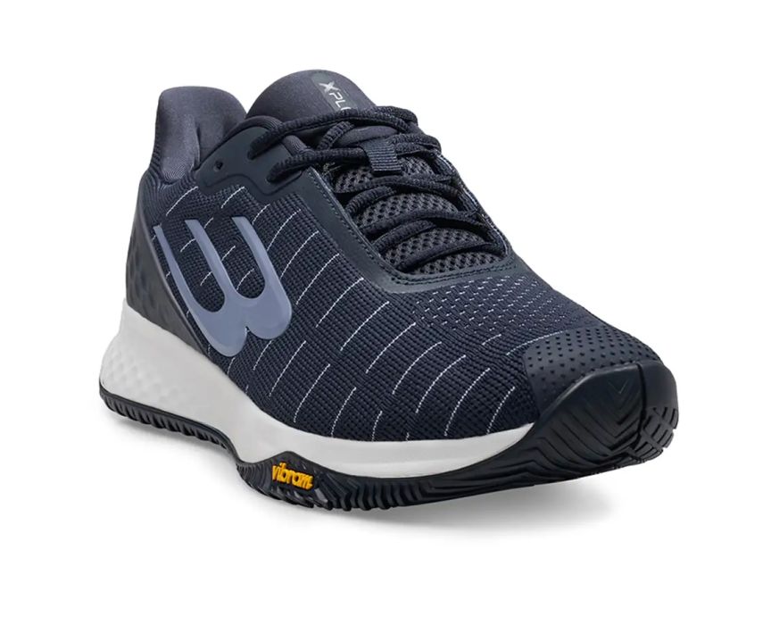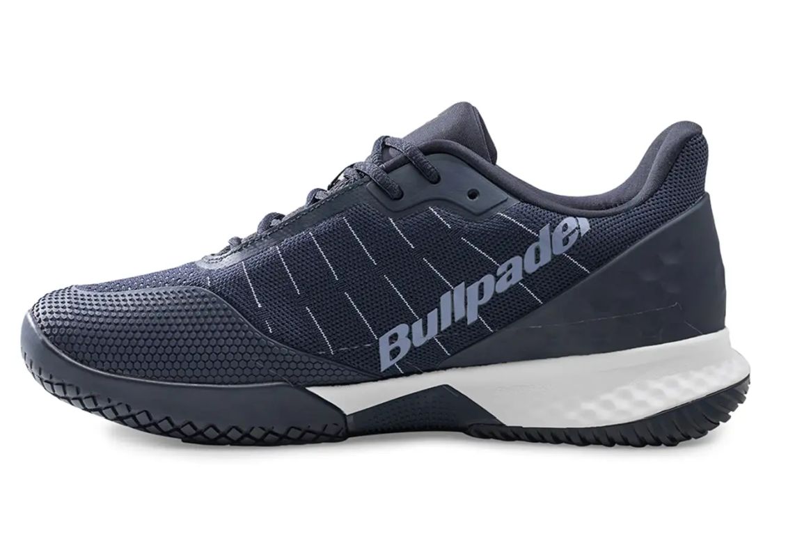 Мужские кроссовки для Падел Bullpadel Xplo PL Tour Final 26V - azul marino. Обеспечивают высокий комфорт и максимальную производительность на кортах падела. Верх выполнен из эластичной жаккардовой ткани, сочетающей прочность с хорошей воздухопроницаемостью. В критических зонах вокруг пальцев и пятки имеются усиления, повышающие устойчивость к износу. Частично интегрированный язычок и закрытый задник гарантируют отличную поддержку стопы и поворотную стабильность. Пеновая средняя подошва обеспечивает амортизацию высшего класса и отзывчивость, позволяющую динамично перемещаться по корту. Наружная подошва, в проектировании которой участвовал мировой лидер производства подошв Vibram, имеет гибридную конструкцию - состоит частично из узора «ёлочка» и зон, повышающих сцепление и долговечность, благодаря чему достигается идеальная тракция.