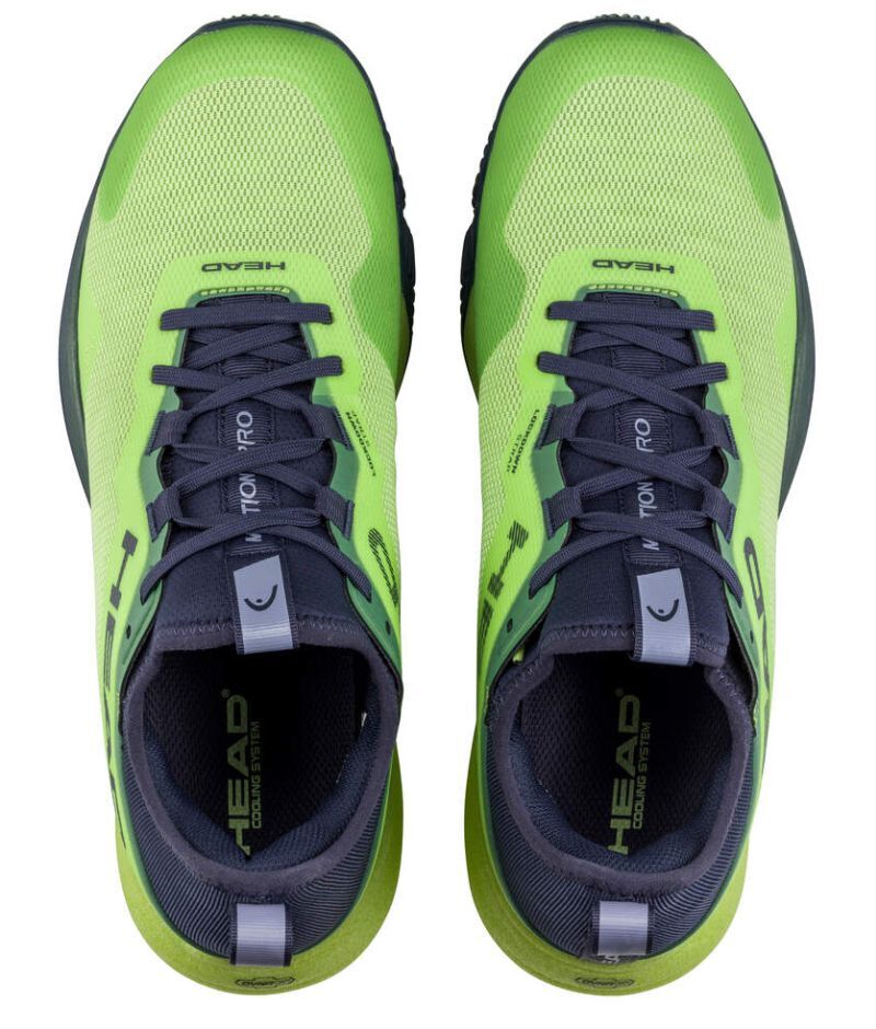 Мужские кроссовки для Падел Head Motion Pro Padel - lime/navy. Продвинутая технологичная модель, созданная в сотрудничестве с профессиональными паделистами. Идеально адаптирована к потребностям и специфике передвижения на падельном корте, сочетает в себе скорость, маневренность и комфорт с отличной поддержкой стопы. Сетчатый верх с системой вентиляции средней части стопы, расположенной снизу, обеспечивает очень хорошую воздухопроницаемость, а система Cooling защищает от перегрева. Магазин tennis-24.ru предлагает эту модель для игроков, ценящих инновации и надежность. Встроенный внутренний носок и интегрированная система шнуровки предотвращают смещение стопы, обеспечивая отличную стабильность. Дополнительная поддержка при боковых движениях благодаря технологии LATERAL CONTROL. В уязвимых зонах пальцев и средней части обуви применены резиновые усиления для повышения прочности. Реактивная средняя подошва из пены с мелкими воздушными пузырьками обеспечивает максимальный комфорт игры и динамичность отскока. Протектор, разработанный и протестированный с поставщиками падельных покрытий, предлагает феноменальное сцепление. Использованы следующие технологии: DRIFT DEFENSE, LOCKDOWN STRAP, DYNAFOAM, HEAD COOLING SYSTEM.