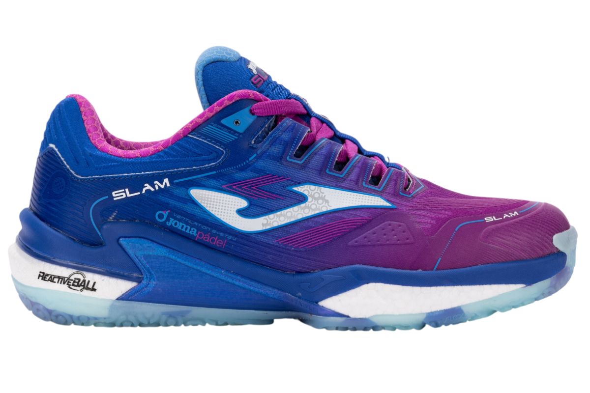 Мужские кроссовки для Падел Joma Slam Men 2573 - blue. Модель, предлагающая высокий уровень прицепности, защиты, стабильности и амортизации. Относительно широкий крой подойдет для более полной стопы или высокого подъема. Верх в основном выполнен из дышащей сетки с элегантной отделкой перфорациями VTS (Ventilation System), обеспечивающей очень хорошую вентиляцию. В наиболее уязвимых, подверженных истиранию зонах вокруг пальцев и пятки применены усиления PROTECTION. Средняя подошва новой формы сконструирована из пен DU AL REACTIVE разной плотности, что позволяет сочетать оптимальную амортизацию с высокой реактивностью. Кроме того, имеет стабилизирующий элемент STABILIS, улучшающий особенно боковую стабильность. Наружная подошва из прочной резины DURABILITY со специально разработанным для покрытий падела протектором обеспечивает идеальное сцепление.