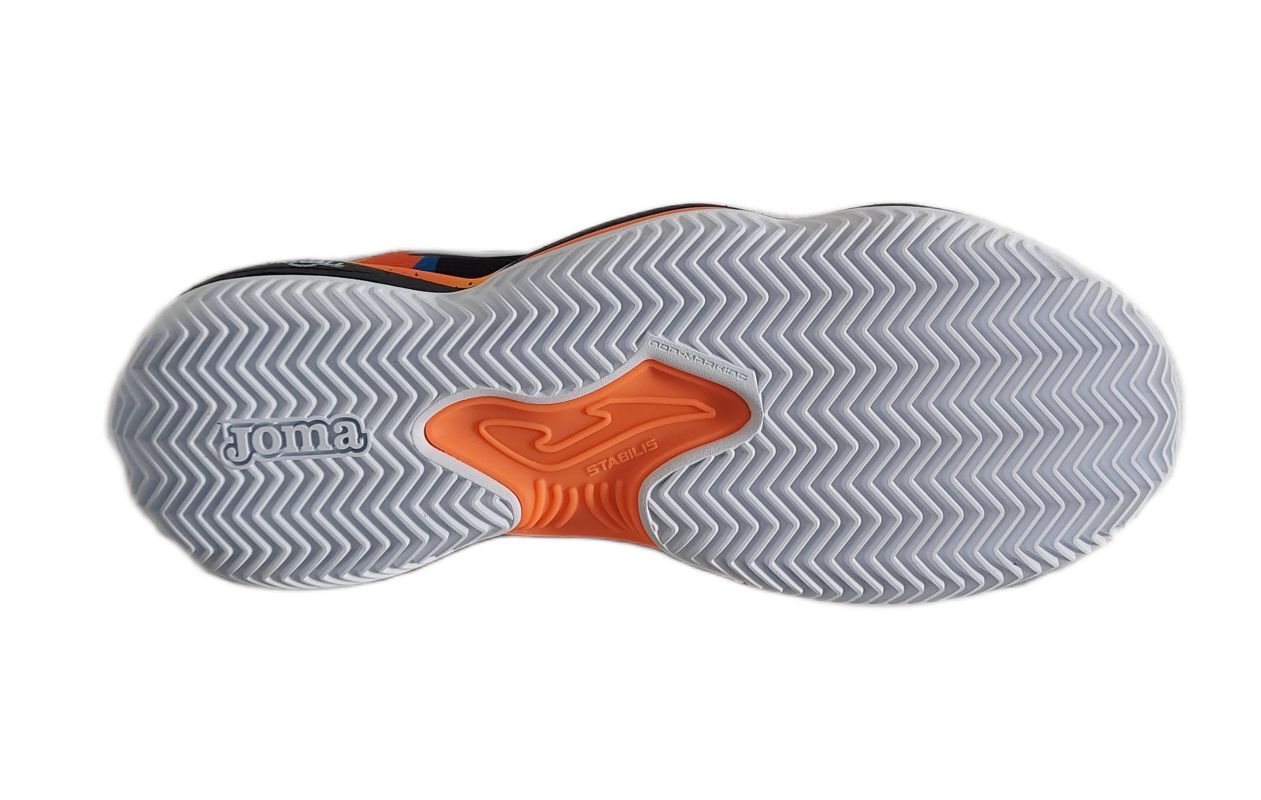 Мужские кроссовки Joma Smash 2531 - black/red/orange. Модель, предлагающая высокий уровень сцепления, защиты, стабильности и амортизации. Относительно широкий крой подойдет для широкой стопы или высокого подъема. Верх выполнен преимущественно из дышащей сетки с элегантной отделкой перфорациями VTS (Ventilation System), обеспечивающими очень хорошую вентиляцию. В уязвимых, наиболее подверженных истиранию зонах вокруг пальцев и пятки применены усиления PROTECTION. Магазин tennis-24.ru предлагает эту модель для тех, кто ценит комфорт и надежность. Средняя подошва новой формы изготовлена из пен DUAL REACTIVE разной плотности, что позволяет сочетать оптимальную амортизацию с высокой отзывчивостью. Дополнительно имеется стабилизирующий элемент STABILIS, улучшающий боковую стабильность. Внешняя подошва из прочной резины DURABILITY с специально разработанным для покрытий падель протектором обеспечивает идеальное сцепление.