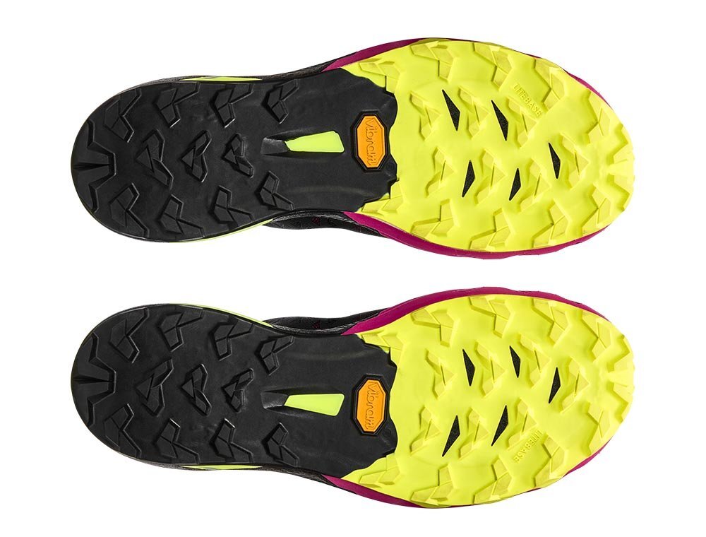 В наружной подошве используется специальная резина Vibram Litebase с 4 мм выступами, обеспечивающими исключительное сцепление. Стабилизирующая плита в форме буквы X улучшает контроль и стабильность стопы на разнообразной местности.