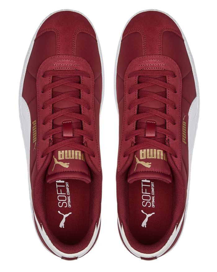 Мужские кроссовки Puma Club Nylon - cordovan/puma white/gold. Спортивные кроссовки типа sneaker, идеально подходят для повседневного использования. Стильный дизайн и исполнение. Прочный нейлоновый верх с замшевыми вставками делает модель долговечной и привлекательной. Магазин tennis-24.ru предлагает этот вариант для тех, кто ценит качество и комфорт. Вырезанная защита пятки обеспечивает надлежащую поддержку стопы. Мягкая резиновая подошва и стелька Softfoam+ предлагают высокий комфорт и очень хорошую амортизацию.