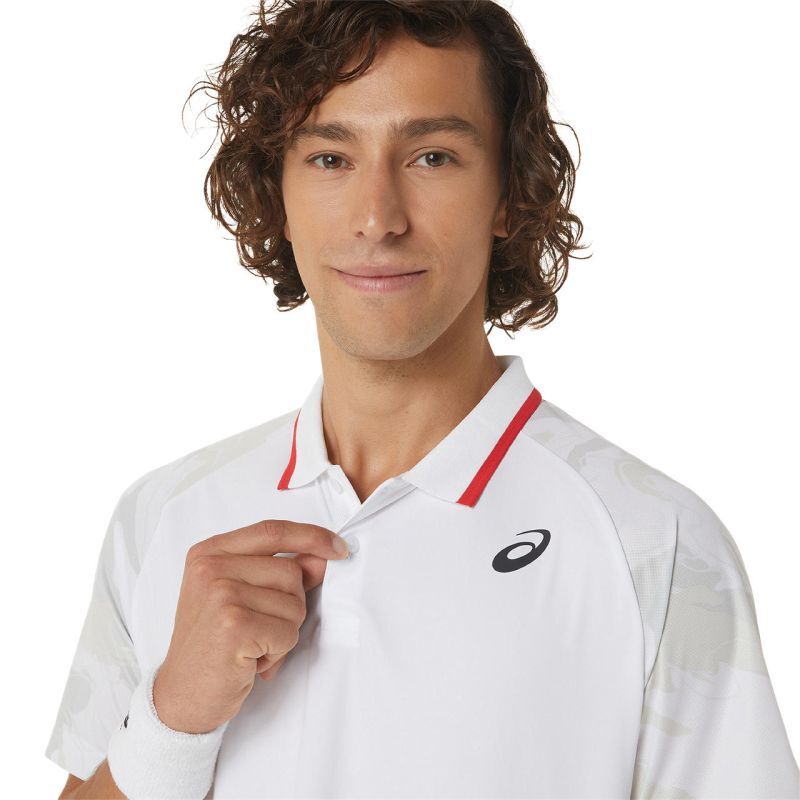 Мужское поло Asics Court Graphic Polo-Shirt - brilliant white. Поло свободного кроя, застегивается под шеей на две пуговицы. Меш-панель обеспечивает хорошую вентиляцию. Легко растягивающийся материал подстраивается под движения. На сайте tennis-24.ru вы найдете этот товар с боковыми небольшими разрезами, которые обеспечивают большую свободу движений. Поло выполнено из дышащего материала с применением технологии PRO-FIT.