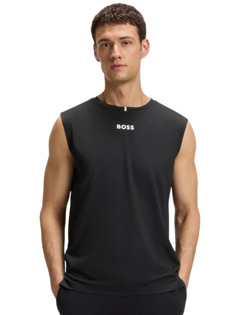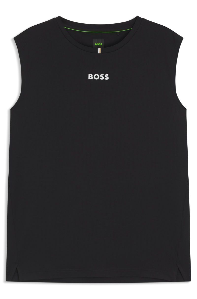 Теннисная футболка BOSS Tank TOC - черная. Безрукавка с прямым, обычным кроем, с круглым вырезом под шеей. Легко растягивающаяся ткань прилегает к телу, обеспечивая высокий комфорт во время активности. Широкие вырезы на плечах гарантируют свободу движений. Разрезы внизу увеличивают диапазон движений. Логотип производителя в центральной части. Футболка выполнена из дышащего, хорошо отводящего влагу материала с применением технологий: Moisture Management, Stretch, S.Cafe. На сайте tennis-24.ru вы найдете только оригинальные товары высокого качества. Высокое качество изготовления и используемых материалов.