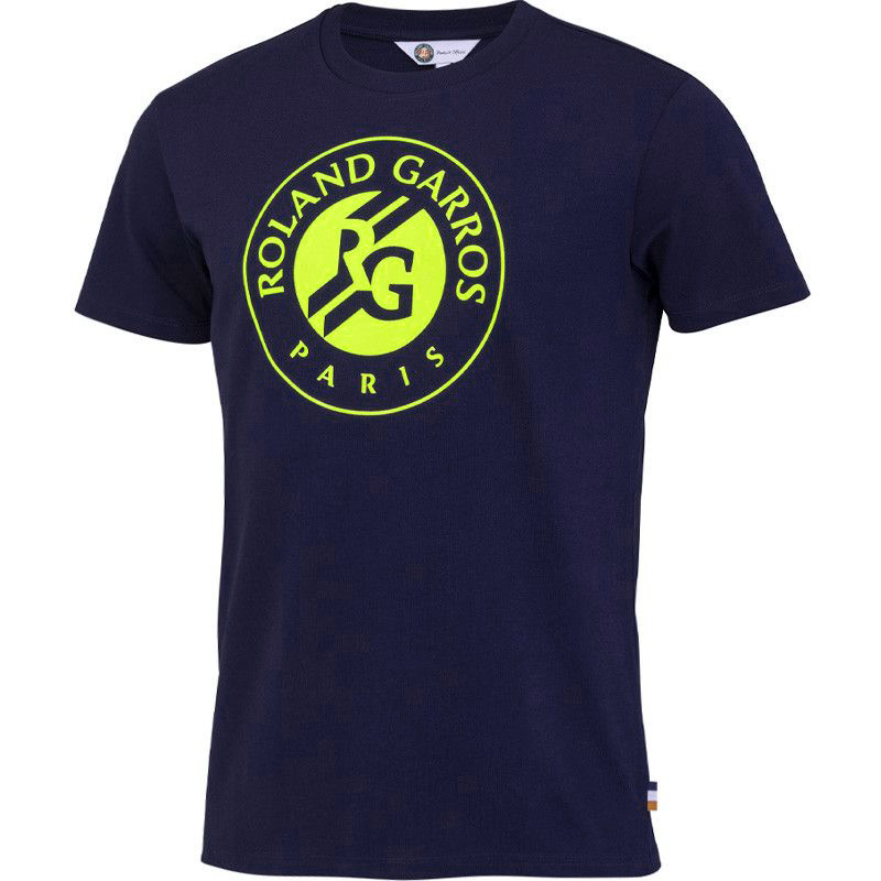Теннисная футболка Roland Garros Big Logo - navy. Простая, классическая футболка, выполненная в регулярном крое, хорошо облегает тело, обеспечивая высокий комфорт носки. Круглый вырез под шею обеспечит удобство. В центре большой теннисный графический мотив, отсылающий к турниру Roland Garros. Идеальный выбор для тренировки или для ношения на каждый день. Высокое качество исполнения и используемых материалов.