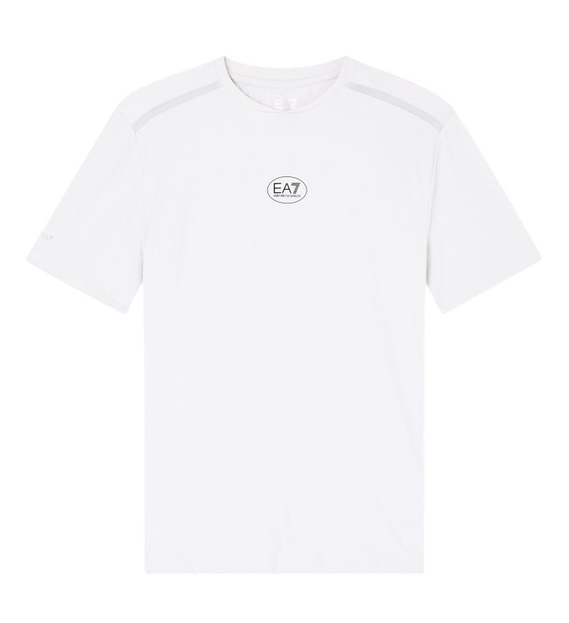 Теннисная футболка EA7 Tennis Pro Crew-Neck - vapor blue. Перфорированная футболка из слегка эластичного материала, хорошо подстраивающегося под движения. Футболка выполнена в простом, классическом крое. Логотип производителя в центральной части. Вставки из сетчатой панели обеспечивают оптимальную вентиляцию. Магазин tennis-24.ru предлагает только оригинальные товары высокого качества. Высокое качество материалов гарантирует комфорт при использовании. Поло изготовлено из дышащего материала с применением технологии: VENTUS7.