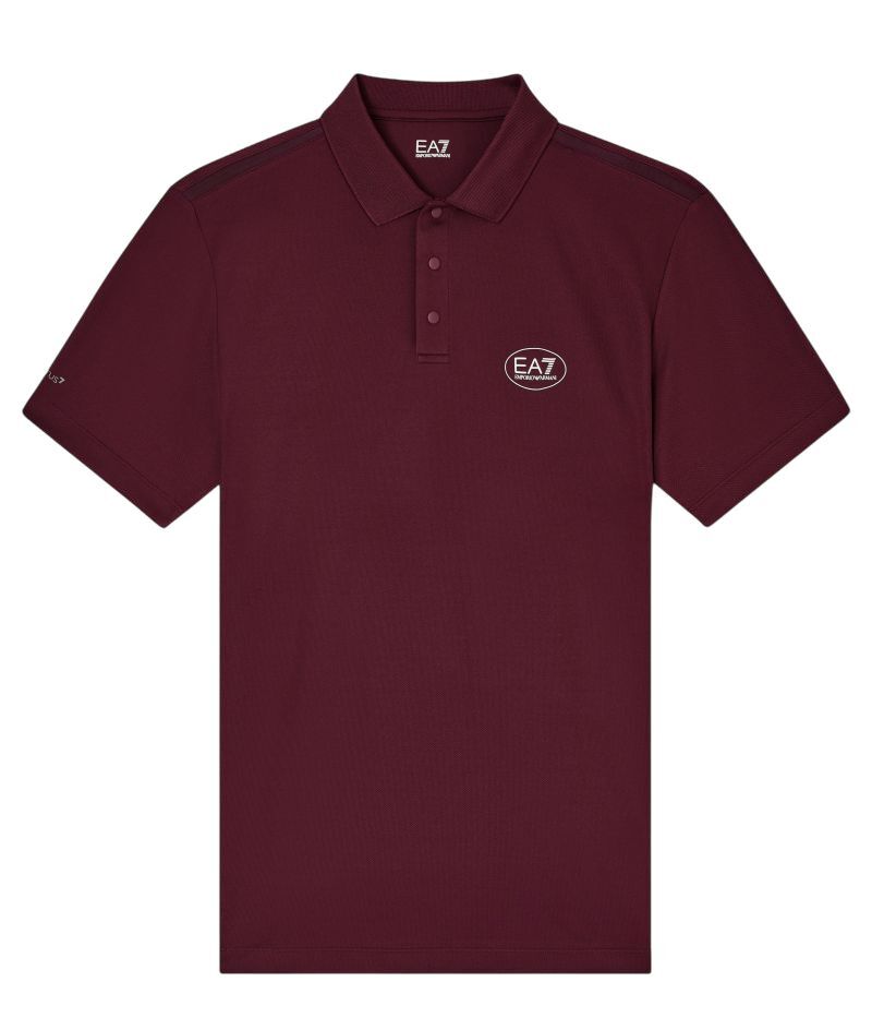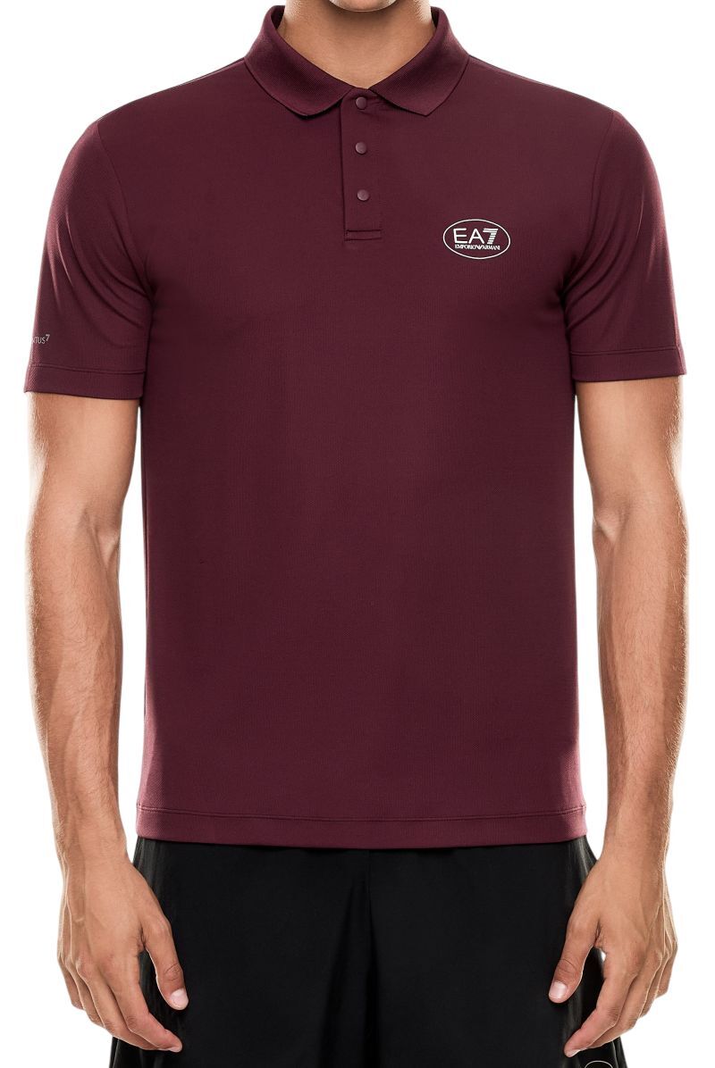 Мужская футболка-поло EA7 Tennis Pro Shirt - бордовая. Легкая футболка-поло из эластичного материала, хорошо прилегающего к движениями. Застегивается на три пуговицы у горла. Поло полностью выполнено из микро-перфорированного материала, что обеспечивает лучшую вентиляцию. Плоские швы минимизируют риск натираний и раздражений. Классический логотип производителя слева. Высокое качество материалов гарантирует комфорт при использовании. Поло выполнено с применением технологий: VENTUS7, UPF50+.