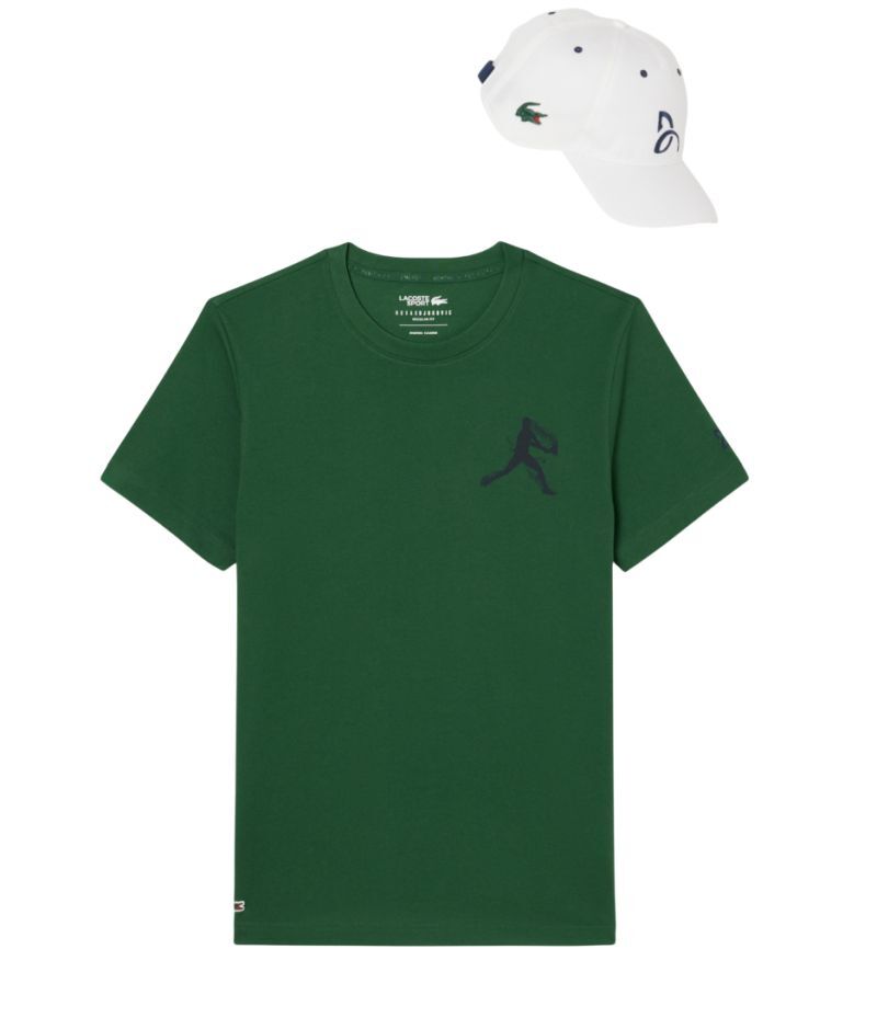 Теннисная футболка Lacoste Tennis x Novak Djokovic Pack - зеленый/темно-синий. Классический и простой дизайн с обычным кроем. Футболка выполнена из приятного на ощупь и комфортного материала. Смесь хлопка и полиэстера гарантирует высокий комфорт при использовании. Слегка эластичный материал подстраивается под движения, обеспечивая свободу во время активности. Магазин tennis-24.ru предлагает этот комплект для настоящих поклонников тенниса. Дышащий, быстро сохнущий материал с применением технологии ULTRA DRY. В комплекте прилагается кепка с жестким, профилированным козырьком и вентиляционными отверстиями, обеспечивающими хорошую воздухопроницаемость. Кепка имеет возможность регулировки с помощью застежки-липучки сзади. В центральной части размещена подпись Novaka Djokovica.
