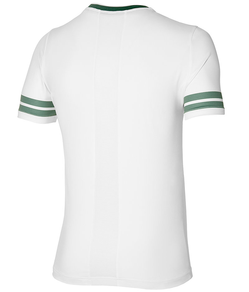 Теннисная футболка Mizuno Shadow Graphic Tee - white. Спортивная футболка классического, regular кроя. Тонкий, слегка эластичный материал хорошо облегает фигуру, при этом обеспечивая оптимальную свободу движений. Сочетание полиэстера с эластаном обеспечивает высокий комфорт во время активности и эффективное отведение влаги. Магазин tennis-24.ru предлагает эту модель для тех, кто ценит качество и стиль. Зона с сетчатой вставкой на спине увеличивает воздухопроницаемость.