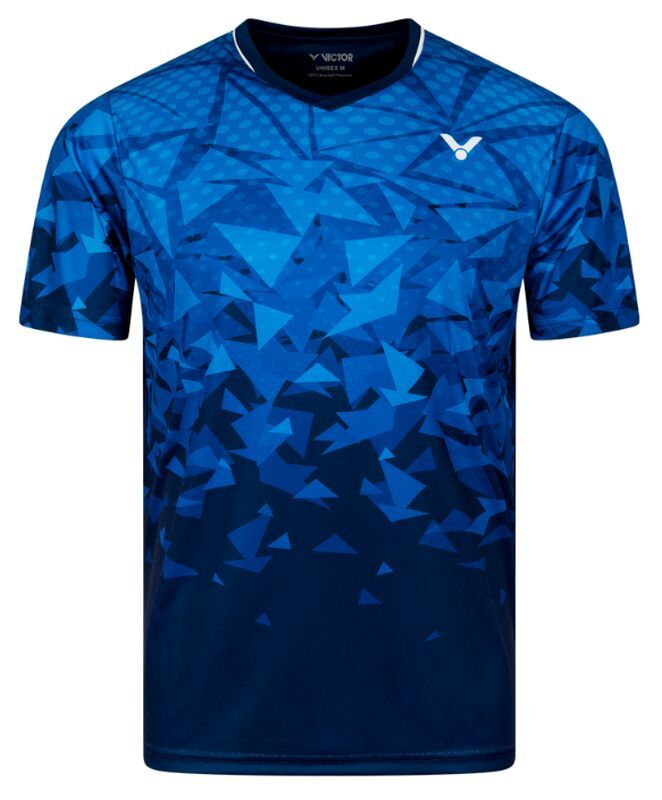 Теннисная футболка Victor T-53100 B. Футболка стандартного кроя с V-образным вырезом. Изготовлена из легкого и комфортного полиэстерового материала. Немного эластичная ткань хорошо облегает тело, обеспечивая комфорт во время активности. Логотип производителя размещен на левой груди. Футболка выполнена из дышащего материала, эффективно отводящего влагу. Магазин tennis-24.ru предлагает этот идеальный выбор для тренировок, игр и повседневного использования.