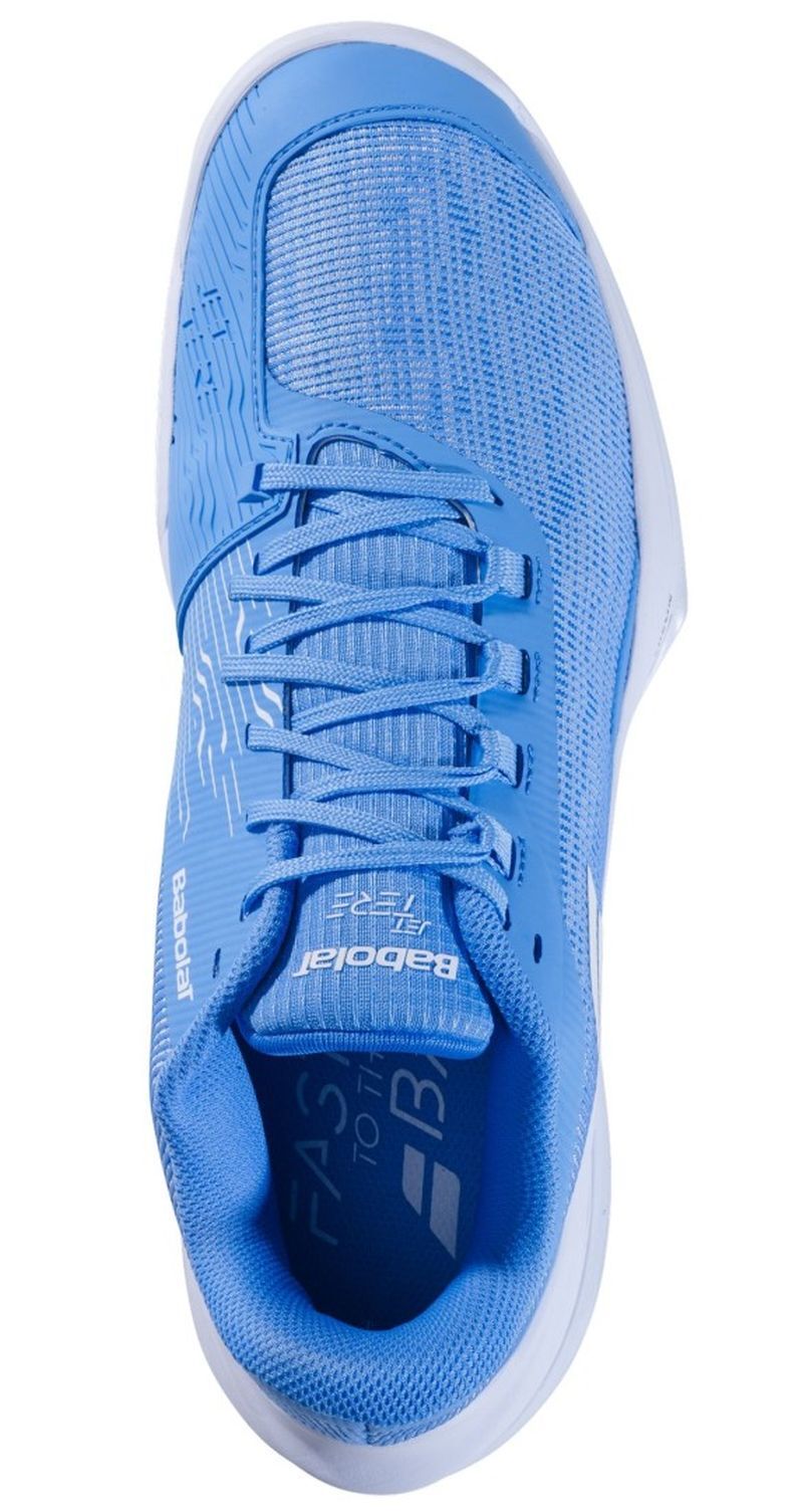 Теннисные кроссовки Babolat Jet Tere 2 Clay - blue atoll. Самая легкая модель в сегменте теннисной обуви Babolat. Разработана специально для обеспечения максимальной скорости и амортизации, одновременно обеспечивая комфорт при использовании. Узкий крой позволяет идеально подогнать обувь и обеспечивает отличную стабилизацию стопы. Верх из мягкой, дышащей сетки гарантирует хорошую вентиляцию. Магазин tennis-24.ru предлагает эту модель для игроков, ценящих легкость и надежность. Повышенная защита пятки и высокий подъем вместе с расширенной передней частью подошвы увеличивают уровень поддержки и сцепления при резких движениях. Усиления в уязвимых зонах вокруг пальцев обеспечивают дополнительную защиту. Подошва с рисунком "елочка" предназначена для игры на грунтовых кортах. Использованы технологии: MICHELIN PERFORMANCE, ORTHOLITE.