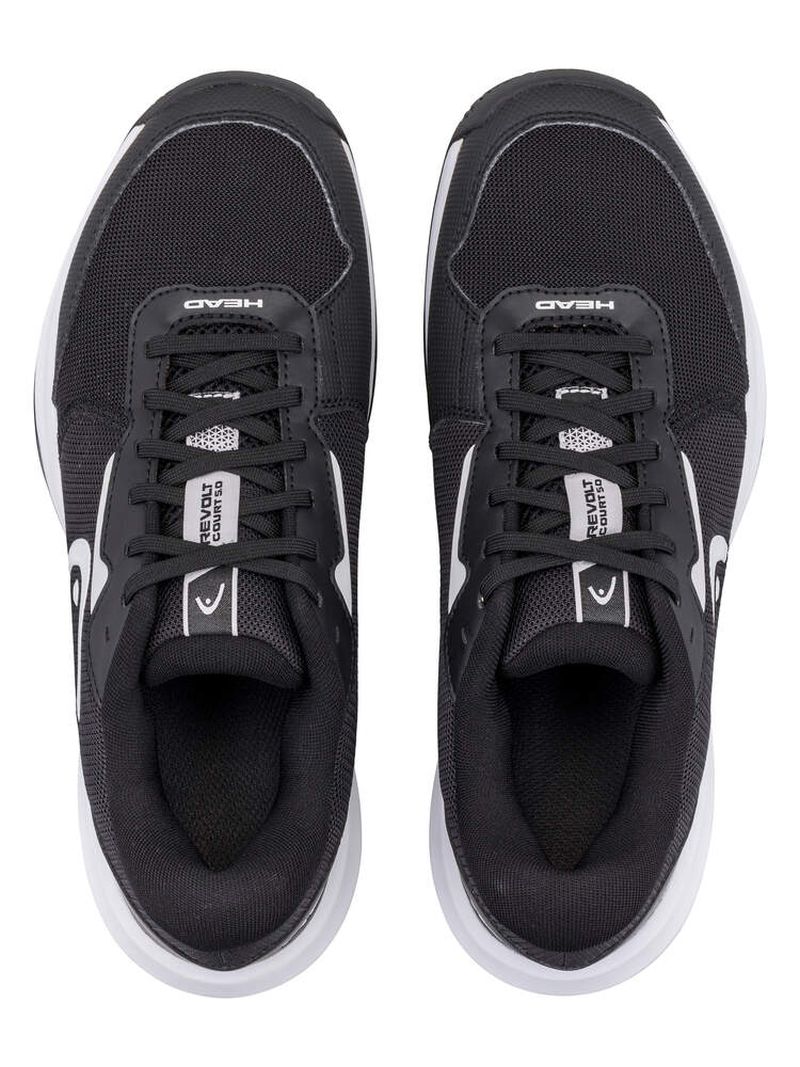 Теннисные кроссовки Head Revolt Court 5.0 - black/white. Комфортная модель, предназначенная для начинающих и рекреационных игроков. Обеспечит им хороший уровень стабилизации и амортизации в обновлённом дизайне. Мягкий сетчатый верх гарантирует высокий комфорт носки и отличную вентиляцию, а в ключевых точках имеет усиления из TPU, повышающие долговечность. Технология LATERAL CONTROL обеспечивает стабильность стопы при движениях в боковой плоскости. Внешнюю подошву из цепкой и износостойкой резины HYBRASION+ оснастили универсальным протектором и системой non-marking.