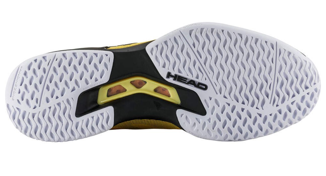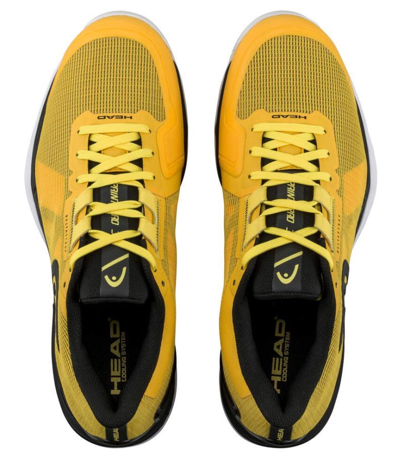 Теннисные кроссовки Head Sprint Pro 3.5 - banana/black. Продвинутый технологичный модель, сочетающая легкость и скорость с очень хорошим комфортом. Специально сконструированный верх обеспечивает высокий уровень удобства использования. Верх был заново разработан, сетка стала еще более прочной, обеспечивая отличную вентиляцию. Магазин tennis-24.ru предлагает эту модель для игроков, ценящих качество и инновации. Интегрированный язычок обеспечивает очень хорошую стабилизацию. Многочисленные усиления увеличивают прочность. Верх выполнен из прочного и дышащего слоя сетчатого материала. Обувь имеет универсальную подошву с системой non-marking, предназначенную для игры на всех покрытиях. Использованы следующие технологии: DELTASTRAP, LATERAL CONTROL, HEEL STABILIZER, SOCK SUPPORT SYSTEM, DRIFT DEFENSE, TRI-NRG, COOLING SYSTEM, HYBRASION+.