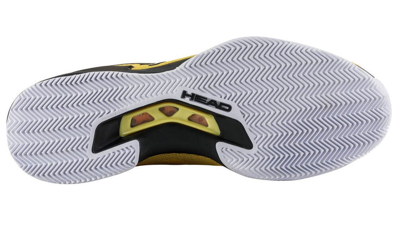 Теннисные кроссовки Head Sprint Pro 3.5 Clay - banana/black. Продвинутая технологически модель, сочетающая легкость и скорость с очень хорошим комфортом. Специально сконструированный верх обеспечивает высокий уровень удобства использования. Верх был заново разработан, сетка стала еще более прочной, обеспечивая отличную вентиляцию. Магазин tennis-24.ru предлагает эту модель, где интегрированный язычок обеспечивает очень хорошую стабилизацию. Многочисленные усиления увеличивают износостойкость. Верх выполнен из прочного и дышащего слоя сетчатого материала. Обувь оснащена универсальной подошвой с системой non-marking, предназначенной для игры на всех покрытиях. Использованы следующие технологии: DELTASTRAP, LATERAL CONTROL, HEEL STABILIZER, SOCK SUPPORT SYSTEM, DRIFT DEFENSE, TRI-NRG, COOLING SYSTEM, HYBRASION+.
