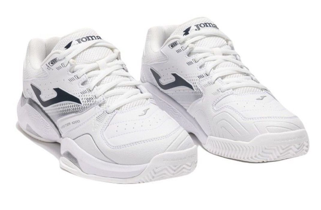 Теннисные кроссовки Joma Master 1000 Men 2532 Clay - white. Кроссовки стандартного кроя обеспечивают базовую амортизацию, защиту и прочность теннисистам с низкой интенсивностью игры. Верх выполнен из полумикрофибры с дышащей сеткой VTS, что обеспечивает хорошую вентиляцию. В боковых зонах и вокруг пальцев имеются дополнительные материальные усиления PROTECTION, повышающие долговечность. Средняя подошва из легкой и эластичной phylonовой пены эффективно поглощает удары. Резиновая внешняя подошва из устойчивого материала RUBBER TECH с протектором в виде ёлочки обеспечивает оптимальное сцепление на грунтовых кортах.