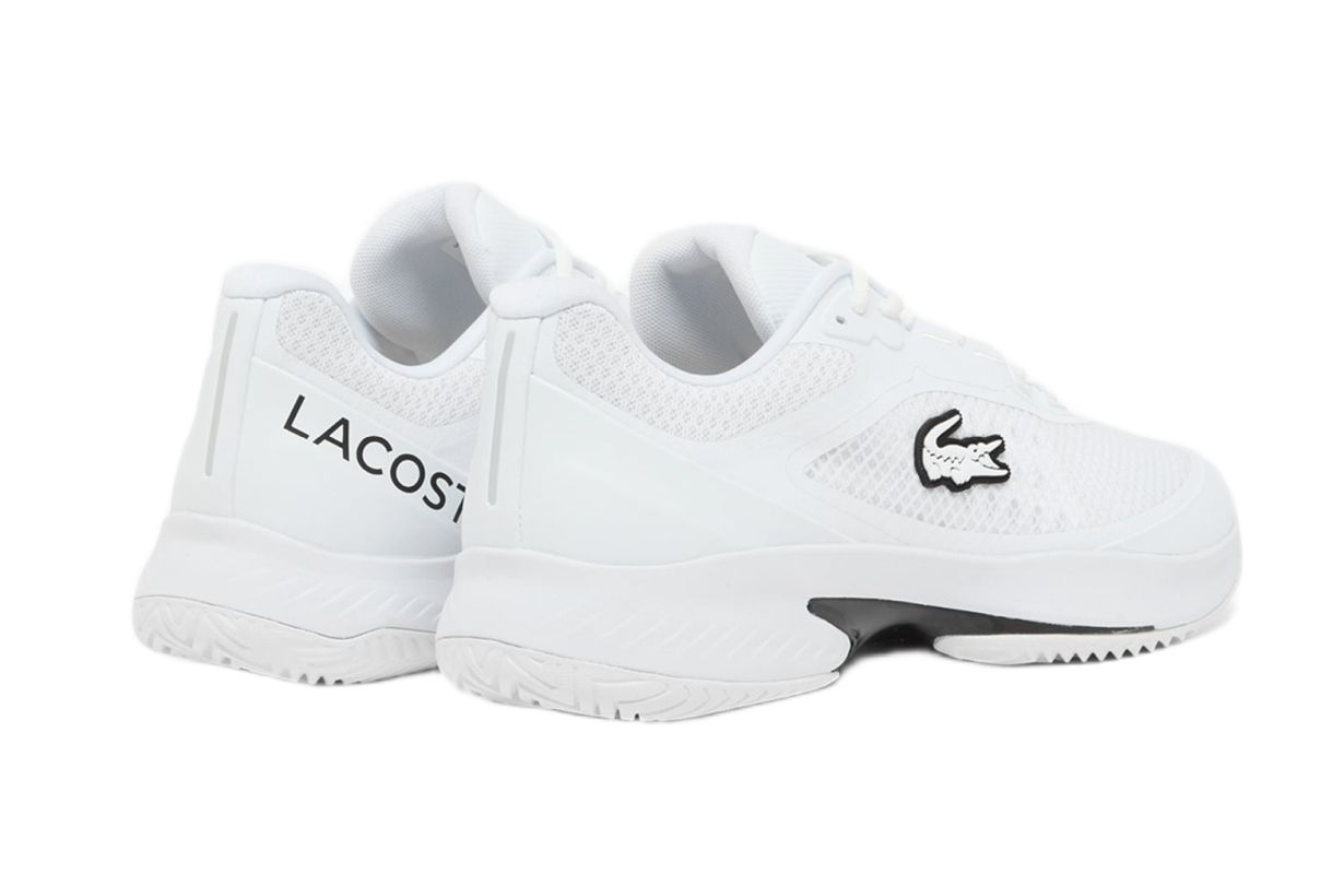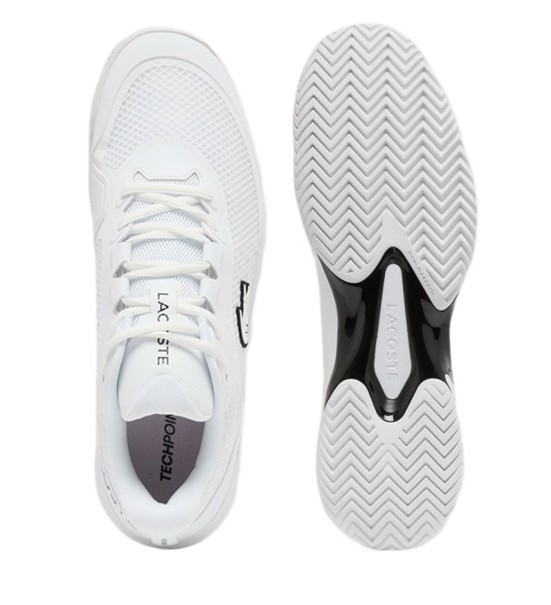 Теннисные кроссовки Lacoste Tech Point Tennis - white/white/black. Модель разработана с мыслью о комфорте и стиле, как на корте, так и вне его. Легкая, спортивная обувь сочетает скорость и маневренность с отличной поддержкой стопы и стабильностью. Текстильный верх с сетчатой подкладкой и резиновыми усилениями в наиболее подверженных истиранию зонах обеспечивает очень хорошую посадку на стопу, оптимальную воздухопроницаемость и высокий комфорт использования. Средняя подошва из амортизирующей пены EVA в сочетании с высококачественной стелькой Ortholite обеспечивает мягкость и отличную амортизацию под стопами. Модифицированный протектор с мелкой ёлочкой из резиновой смеси и системой non-marking гарантирует сцепление и долговечность на различных покрытиях кортов.