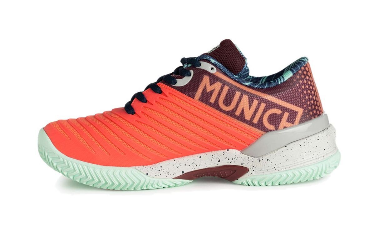 Мужские кроссовки для паддла Munich Padx 28 - розовые. Легкая и быстрая модель, предлагающая универсальный комфорт. Имеет дышащий верх из тканой сетки с эластичными резиновыми усилениями и интегрированным язычком, обеспечивающим отличную посадку на стопе. Область подъема с впрыскиваемым материалом KPU отличается повышенной прочностью. Магазин tennis-24.ru предлагает эту модель для тех, кто ценит качество и надежность. Пластина TPU, расположенная под сводом стопы, гарантирует очень хорошую стабильность при боковых движениях и дополнительную поддержку. Амортизирующая система X-LITE в средней подошве идеально рассеивает негативные силы, вызванные ударом пятки о корт. Внешняя подошва с протектором в виде двойной елочки обеспечивает необходимое сцепление и тягу на кортах для паддла и глиняных теннисных кортах.