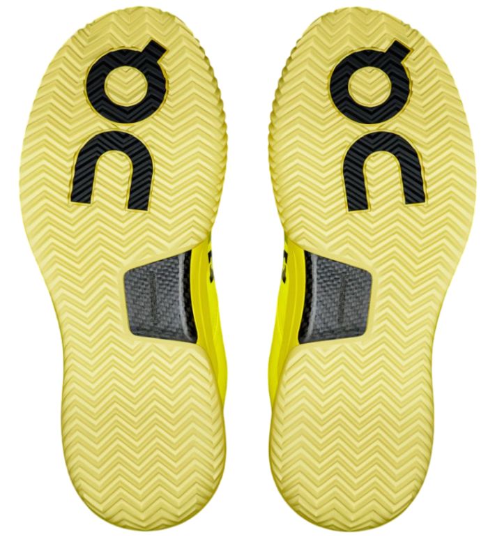 Теннисные кроссовки On The Roger Pro 2 Clay - lime/limelight. Модель, предлагающая исключительную производительность и отвечающая потребностям самых требовательных и профессиональных игроков. Участие самого Роджера Federera в процессе проектирования позволило улучшить долговечность и уровень поддержки стопы при сохранении легкости и отличного комфорта. Верх из ультратонкой устойчивой сетки вместе с язычком, имеющим частично интегрированную конструкцию и перфорации, обеспечивает максимальную воздухопроницаемость и надежно удерживает стопу в обуви. Профилированный задник предлагает дополнительную стабилизацию. Боковые зоны и область вокруг пальцев оснащены резиновыми усилениями, повышающими прочность при скольжениях и резких изменениях направления. Технология CloudTec, усиленная карбоновой пластиной Speedboard под средней частью стопы, гарантирует отличную амортизацию и упругость шага благодаря эффективному возврату энергии. Образ дополняет timeless дизайн с ретро-элементами, вдохновленный lifestyle-серией sneakers марки ON. Кроссовки имеют подошву для игры на грунтовых кортах. Кроссовок создан в сотрудничестве с Rogerem Federerem и учитывает все рекомендации швейцарского чемпиона!