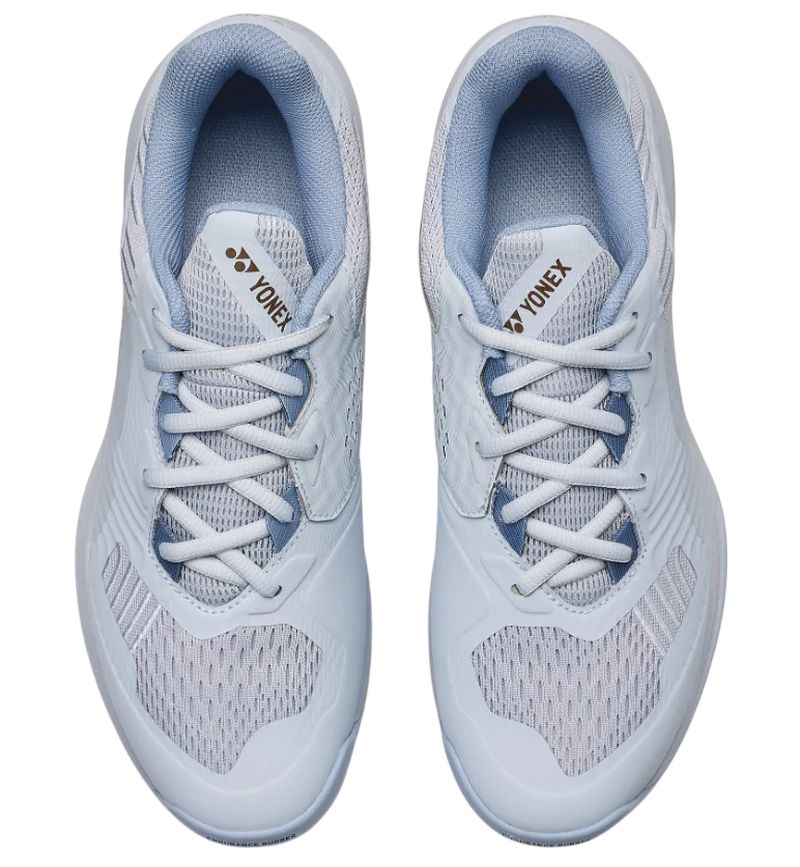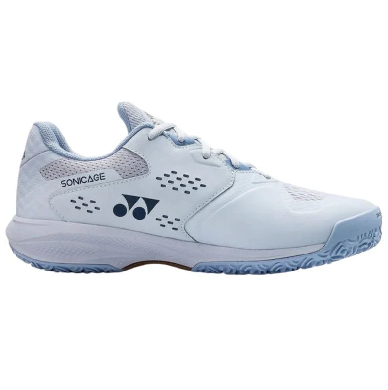 Теннисные кроссовки Yonex Power Cushion Sonicage Clay - pale blue. Легкая и комфортная модель с идеально облегающим стопу кроем. Модифицированный верх обеспечивает еще лучшие характеристики, особенно в плане стабилизации стопы. Зоны mesh-панели предлагают повышенную воздухопроницаемость, что приводит к большему комфорту во время игры. В ключевых местах применены специальные усиления. Очень хорошая амортизация благодаря признанной технологии POWER CUSHION +. Язык частично выполнен из mesh-панели и частично интегрирован с верхом конструкции, что позволяет на еще лучшее прилегание и обеспечивает дополнительную поддержку стопы. Применены следующие технологии: ROUND SOLE, TOE ASSIST SHAPE, DURABLE SKIN, POWER GRAPHITE, ENDURANCE RUBBER. Кроссовок имеет подошву, предназначенную для игры на грунтовых кортах.