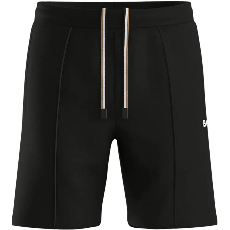 Мужские шорты BOSS Headlo MB Jersey. Выполнены в простом, regular крое, подойдут для повседневных образов. Широкий пояс с резинкой и регулировкой в виде шнурков обеспечивают отличную посадку по фигуре. Два боковых кармана и один задний на пуговице. Ткань шорт выполнена из ребристого материала. Классическое логотип производителя у левого кармана. Шорты из коллекции, созданной в сотрудничестве с итальянским теннисистом Matteo Berrettini. На сайте tennis-24.ru вы найдете эти шорты из материалов высочайшего качества, не менее 60% из них переработаны. Шорты изготовлены с применением технологий Quick Dry, Four Way Stretch.