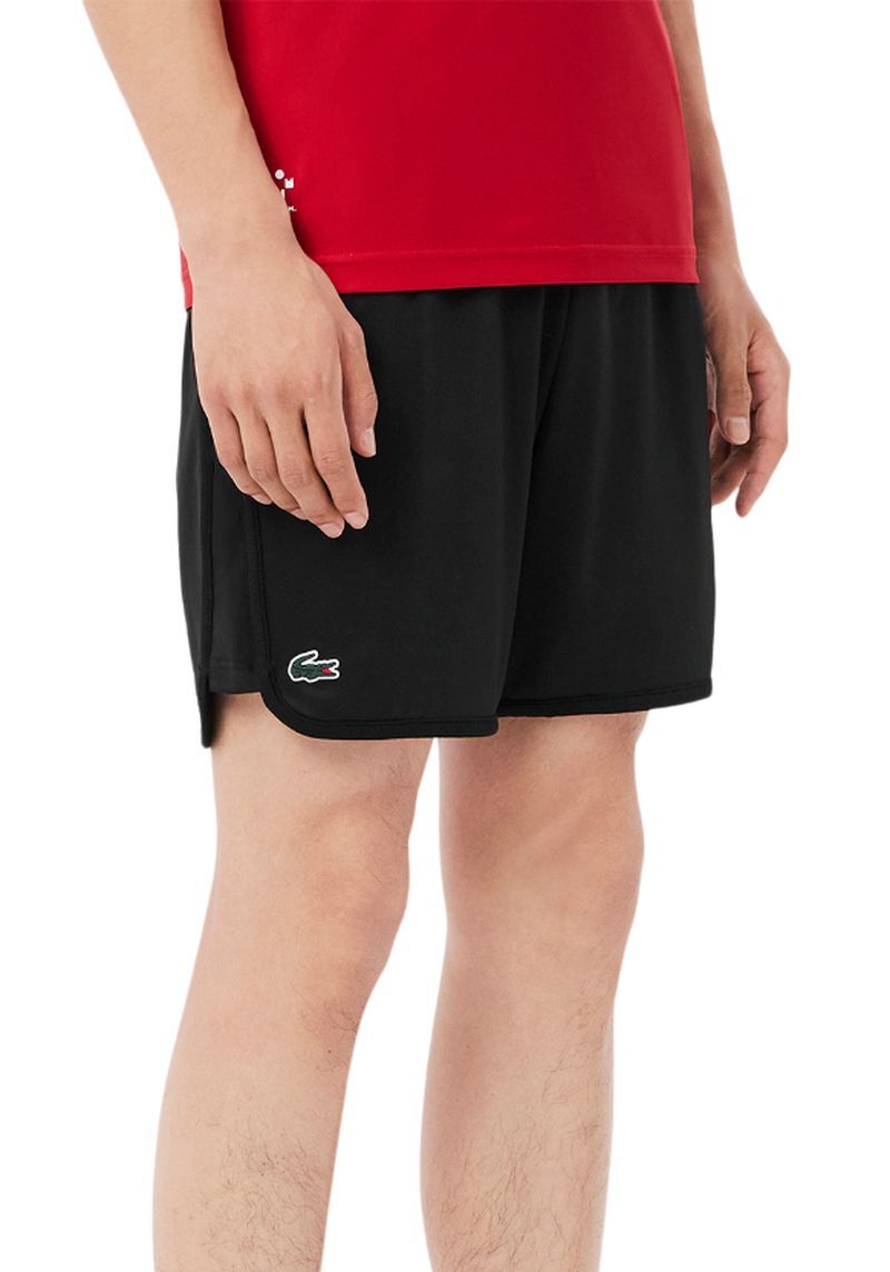Мужские шорты Lacoste Tennis X Daniil Medvedev. Комфортные и стильные шорты выполнены в regular крое с прямой штаниной. Прочная, слегка эластичная резинка на поясе вместе с внутренним шнурком позволяет идеально подогнать по фигуре, обеспечивая высокий комфорт во время игры. Два боковых кармана с внутренней сеткой для лучшей вентиляции. Магазин tennis-24.ru предлагает оригинальные шорты из коллекции Даниила Медведева. Силиконовое лого производителя на правой штанине. Шорты изготовлены из легкого, дышащего материала с применением технологий ULTRA DRY и STRETCH.