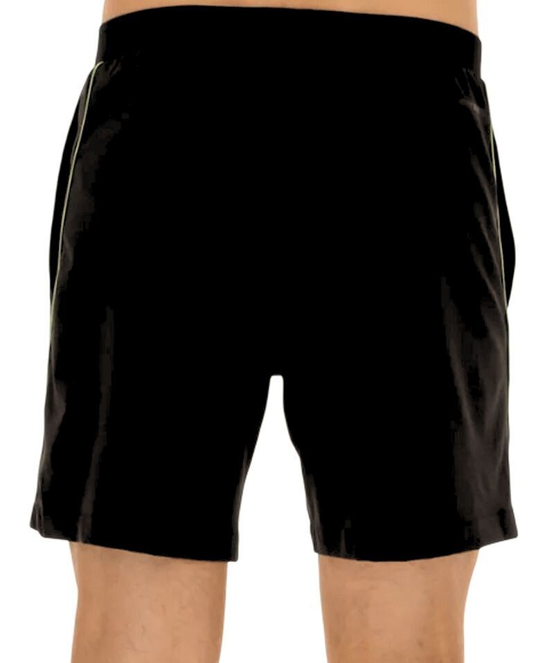 Мужские шорты Lotto Superrapida V - all black/green apple neo. Легкие полиэстеровые шорты, выполненные из быстросохнущего материала, обеспечат очень хороший комфорт во время активности. Два глубоких открытых кармана по бокам. Магазин tennis-24.ru предлагает этот товар для ценителей удобства и стиля. Широкая резинка на поясе вместе со шнурком позволит идеально подогнать. Логотип производителя на левой штанине. Шорты изготовлены с применением технологии: 4WAY STRETCH.