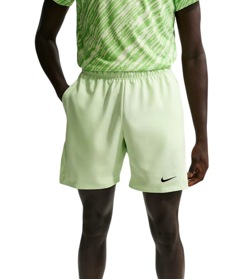 Мужские шорты Nike Court Dri-Fit Victory 7" - light liquid lime/black. Шорты легкого и удобного кроя. Два глубоких кармана по бокам. Широкая эластичная резинка в поясе обеспечивает отличное прилегание к движениям спортсмена. Логотип производителя на левой штанине. Боковые разрезы в нижней части штанин позволяют увеличить диапазон движений во время активности. Шорты выполнены в технологии Dri-Fit.