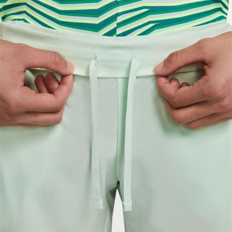 Мужские шорты Nike Dri-Fit Slam Tennis Shorts - barely green/black. Широкая, эластичная резинка в поясе вместе со шнурком обеспечит идеальное прилегание к фигуре. Два боковых кармана с внутренней сеткой для увеличения вентиляции. Легкий эластичный материал позволит получить максимальную свободу движений, а внутренняя прослойка с сетчатой панелью вместе с задней вставкой внизу обеспечит еще лучшее прилегание, свободу движений и высокий комфорт во время игры. Шорты выполнены в технологии: DRI-FIT.