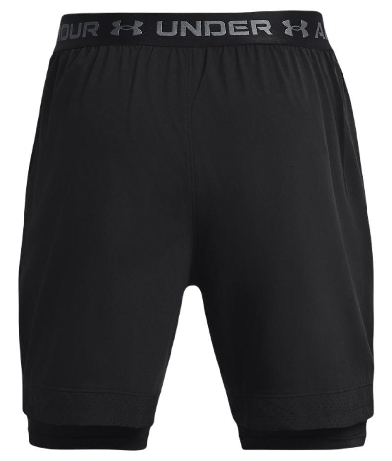 Мужские шорты Under Armour Vanish Woven 2-in-1 Shorts - black/pitch gray. Эластичный материал в поясе с регулировкой в виде кулика обеспечит идеальную посадку. Боковые разрезы увеличивают свободу движений, а перфорированные кромки низа обеспечивают хорошую вентиляцию. Встроенные внутренние спортивные шорты. Два боковых сетчатых кармана. Шорты выполнены из ультралегкого и долговечного материала, который быстро сохнет и эффективно отводит влагу.