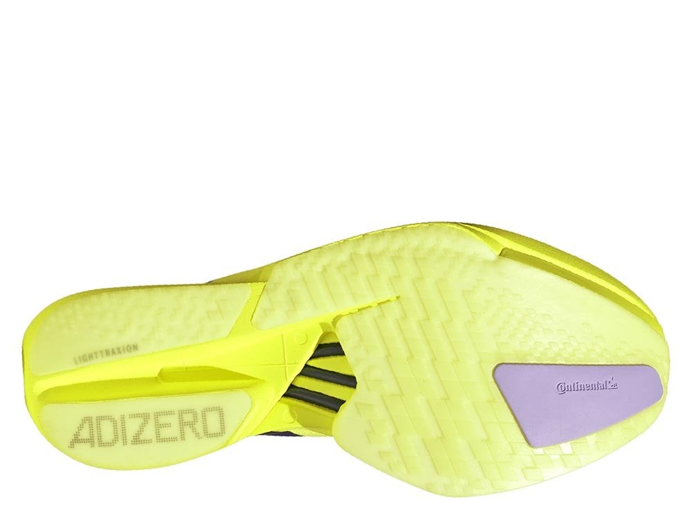 adidas ввел новый рисунок протектора Lighttraxion, который обеспечивает отличную прицепность на сухих покрытиях. Из резины Continental сохранена лишь небольшая площадь в передней части обуви, что добавляет легкости.