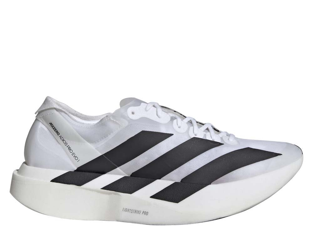 Adizero Adios Pro Evo 1 — это сочетание инновационных технологий, таких как революционная пена Lightstrike Pro (формованная без компрессии), которая в этой версии стала легче, динамичнее и упругой, а также новая технология резины, применённой в передней части подошвы. adidas отказался в этой модели от внутренней стельки, чтобы обеспечить бегунам максимальную лёгкость во время бега.