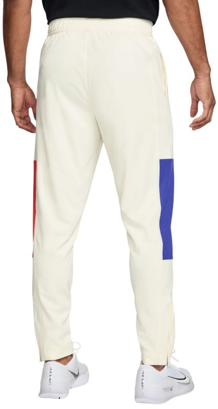 Мужские брюки Nike Court Heritage. Тренировочные брюки стандартного кроя. Эластичная резинка в поясе вместе с внутренним шнурком позволит добиться идеальной посадки. Брюки выполнены из легкого, дышащего материала. Имеют два боковых кармана из перфорированного материала для улучшения вентиляции. Ногавки можно частично расстегнуть с помощью молний. Плоские швы минимизируют риск натираний и раздражений. Иконический логотип Nike Heritage виден с левой стороны.