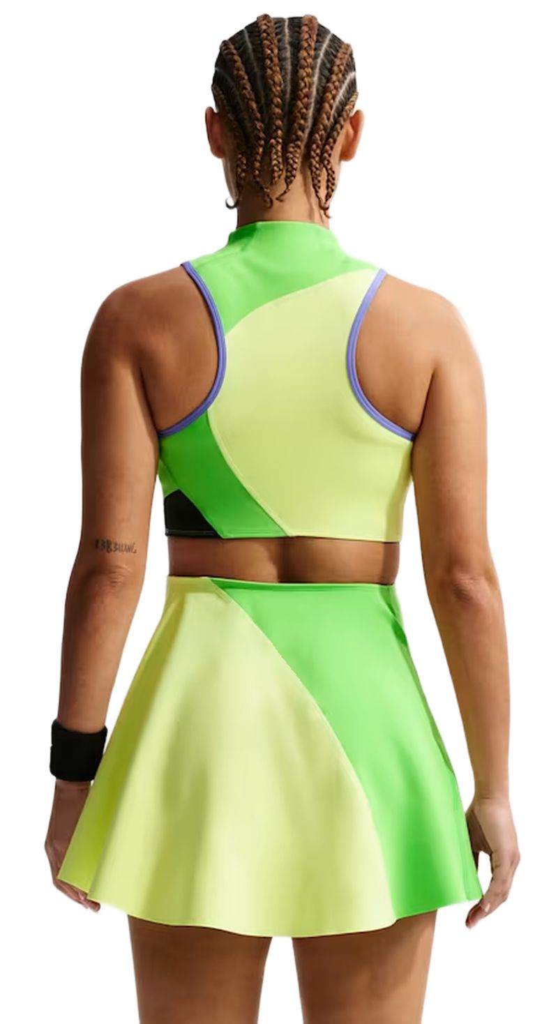Женское платье Nike Court Slam Dri-FIT Tennis - light lemon twist/mean green/black/black. Мягкий, приятный на ощупь материал, вдохновлённый пенками для серфинга, обеспечит хорошее отведение влаги, а тем самым высокий комфорт во время активности. Короткая молния у ворота облегчит надевание. Приталенный крой и широкие вырезы на плечах обеспечат больший диапазон движений и свободу. Широкий вырез на спине обеспечит лучшую вентиляцию, а эластичная резинка на талии — удобство ношения. Плоские швы минимизируют риск натираний и раздражений. Платье выполнено с использованием технологии DRI-FIT.