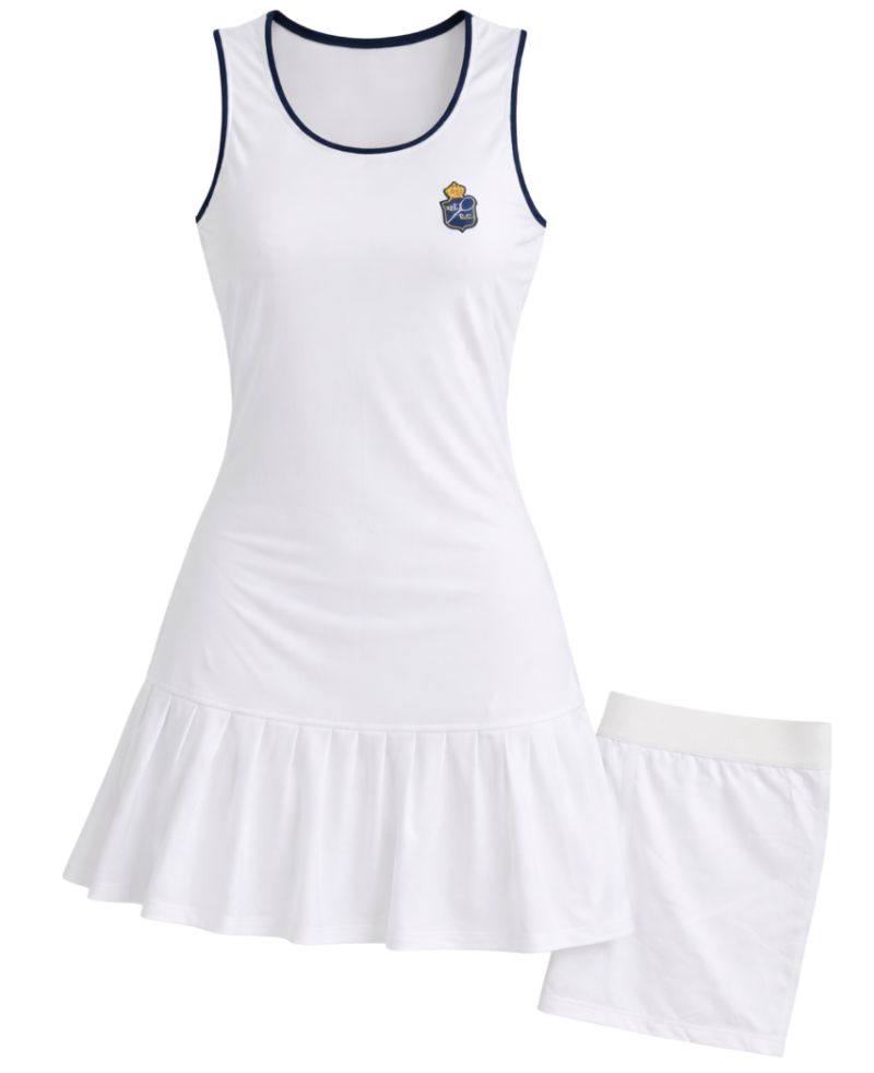 Женское платье Monte-Carlo Country Club MCCC Patch - white. Стильное платье, выполненное в сочетании эластичного верха с плиссированной нижней частью. Легкий, эластичный материал хорошо прилегает к телу, обеспечивая высокий комфорт при ношении. Эластичные бретельки обеспечивают удобство и свободу движений. В комплекте отдельно короткие шорты с широкой резинкой на талии. Плоские швы уменьшают риск натирания и раздражения. Высокое качество исполнения и используемых материалов. Платье украшено логотипом Monte Carlo Country Club на груди.