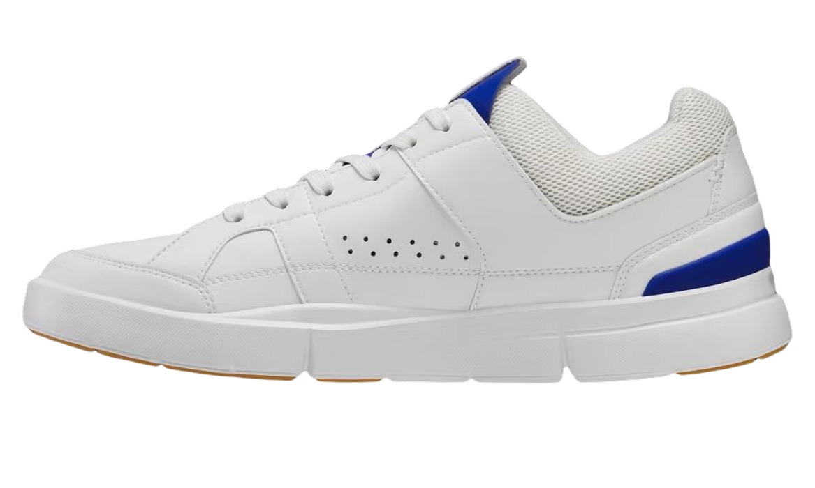 Мужские кроссовки On The Roger Clubhouse Men - white/indigo. Городские кроссовки, вдохновлённые миром тенниса Роджера Федерера. Вневременной внешний вид с элементами ретро, а также материалы из устойчивых источников делают эту модель сочетанием передовых технологий беговых кроссовок On Running и заботы об окружающей среде. Высокая резиновая подошва стилистически отсылает к 90-м годам. Технологии CloudTec и Speedboard обеспечивают амортизацию и пружинящий шаг благодаря эффективному поглощению ударов от поверхности. Кроссовки созданы в сотрудничестве с Роджером Federerem.