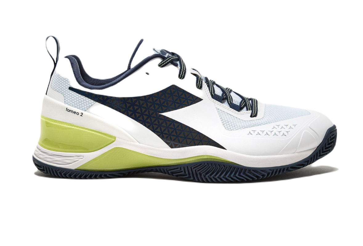 Теннисные кроссовки Diadora Blushield Torneo 2 Clay. Зоны сетчатой панели в передней части верха увеличивают вентиляцию. Очень хорошая поддержка стопы и амортизация. В наиболее уязвимых, подверженных истиранию зонах применены дополнительные усиления. Частично интегрированный язычок дополнительно фиксирует стопу в обуви, повышая стабильность. Применены следующие технологии: CCB, DURATECH 500, D-SKIN, SUPRELLTECH, BLUSHIELD. Модель с подошвой для грунтовых кортов.