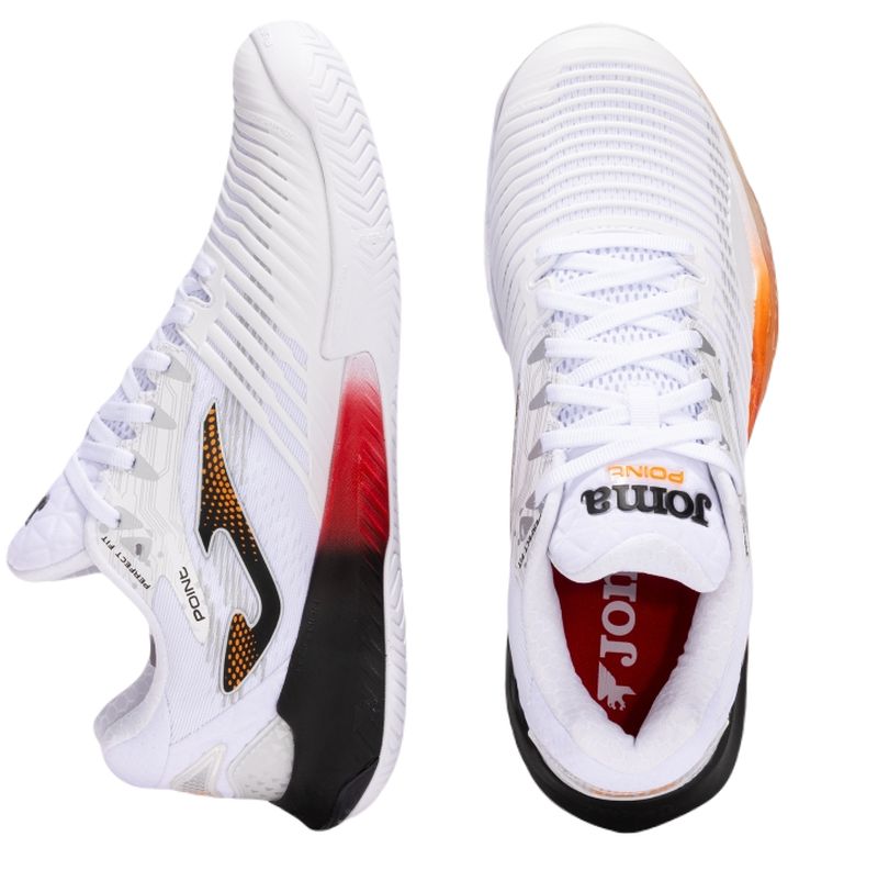 Теннисные кроссовки Joma Point 2532 - white. Модель предназначена для требовательных игроков, ищущих обувь с очень хорошей амортизацией и стабилизацией. Прочный верх со специально расположенными вентиляционными зонами элегантного, современного вида сочетает надлежащую поддержку стопы с хорошей воздухопроницаемостью. Язычок частично выполнен из mesh-панели. Усиление ExoCounter обеспечит хорошую защиту пятки. Средняя подошва из пены и технологии Stabilis отвечает за стабильность и сцепление. Идеально поддерживает сохранение правильного баланса. Большое внимание уделено защите от травм благодаря усилениям в ключевых местах. Обувь благодаря универсальному профилю протектора подойдет для любого типа покрытия. Применены технологии: PerfectFit, Protection, Sportech, RubberTech, Flexo.