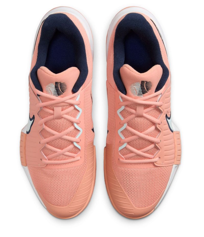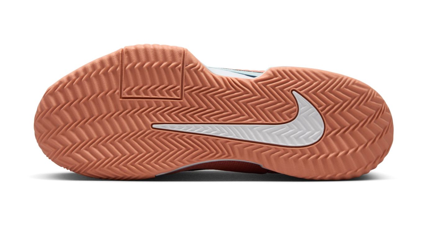 Теннисные кроссовки Nike Zoom GP Challenge Pro Clay - apricot agate/glacier blue/white. Модель разработана на основе ценимых игроками характеристик кроссовок Nike Air Zoom GP Turbo. Позволяет справляться с агрессивными движениями на корте, обеспечивая скорость и поддержку без ущерба для комфорта. Оснащена единицей ZOOM AIR, расположенной под пятой, которая обеспечивает еще больше динамики при подбеге к удару и дополнительно стабилизирует пятку. Мягкая пена под передней частью стопы гарантирует амортизацию высшего класса. Верх выполнен из синтетической сетки, а частично интегрированный язычок из сетчатого материала улучшают воздухопроницаемость и уровень прилегания к стопе. Прочная резиновая внешняя подошва усилена в местах, особенно подверженных износу, и имеет более широкую основу, повышающую стабильность при движении. Кроссовки имеют подошву, предназначенную для игры на грунтовых кортах.