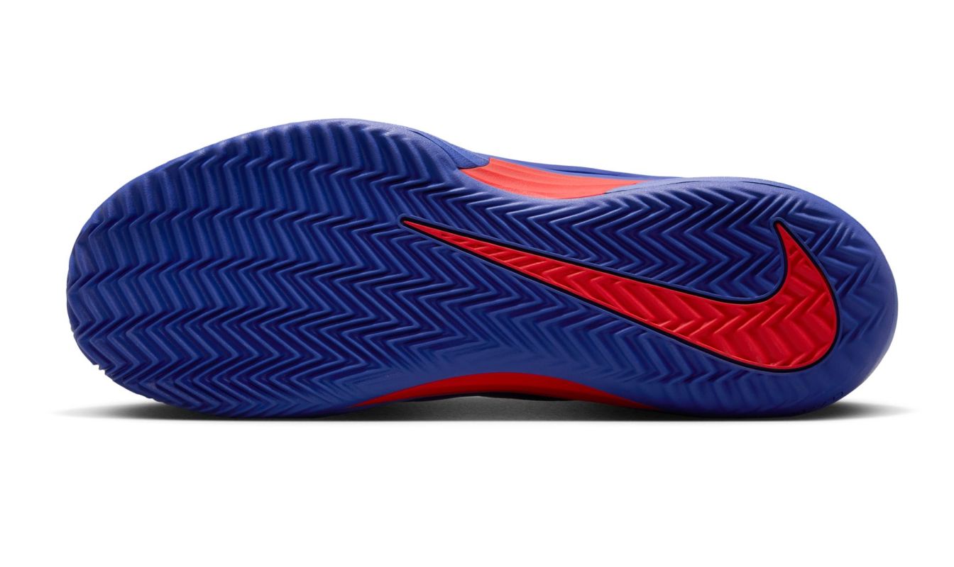 Теннисные кроссовки Nike Zoom Vapor 12 Clay Premium - deep night/lt crimson/pale ivory. Двенадцатое обновление культовой серии обуви Air Zoom Vapor было проведено на основе отзывов как профессиональных игроков, так и любителей, а также с учетом данных об износе обуви на примере Holgera Rune. Модель обеспечивает еще большую легкость и динамику движений при сохранении высокого комфорта и прежней отличной стабильности. Усовершенствованный верх из сетки высокой плотности обеспечивает очень хорошую воздухопроницаемость, а усиления из литого полиуретана в ключевых зонах защищают наиболее подверженные истиранию точки на внутренней стороне и вокруг пальцев без увеличения веса обуви. Прочная пластина, окружающая область срединной части стопы, отлично поддерживает стопу, гарантируя уверенность во время резких скольжений, поворотов и смены направления. Внутренний носок до половины верха улучшает уровень посадки, дополнительно стабилизируя стопу по бокам. Применение под пяткой проверенной газовой подушки Zoom Air обеспечивает высочайший уровень амортизации с динамикой отдачи и пружинистостью для следующего шага. Специальный протектор внешней подошвы CLAYBREAKER, разработанный с учетом карт давления и анализа зон, в которых скапливается наибольшее количество пыли, обеспечивает отличное сцепление на грунтовых кортах и минимизирует налипание грязи. Модель из коллекции, подготовленной для турнира Большого шлема Roland Garros 2025.