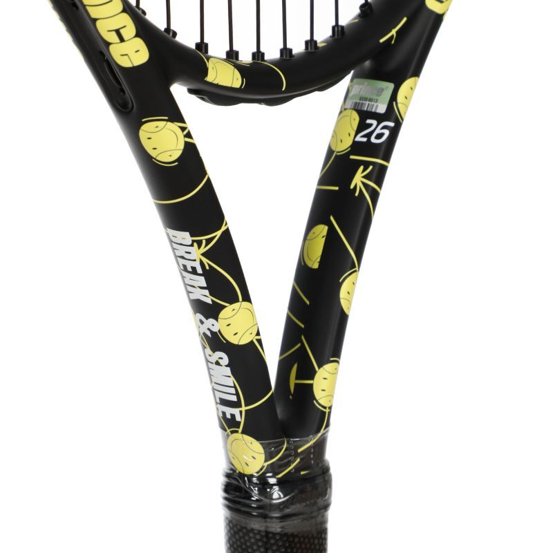 Юниорская теннисная ракетка Prince X Smiley Junior 26. Новое воплощение ракеток, являющееся результатом объединения усилий брендов Prince и Smiley. Правильное сочетание параметров и технологий делает её идеальным вводом юных спортсменов в мир тенниса, обеспечивая удовольствие и лёгкость игры. Изготовлена из графитового композита, что значительно повышает комфорт игры. Классическая головка размером 100 квадратных дюймов обеспечивает оптимальный контроль над ударами, а баланс, смещённый в сторону головки, поддерживает мощность и динамику. Ракетка подходит для детей от 10 до 12 лет или с ростом 141-155 см.