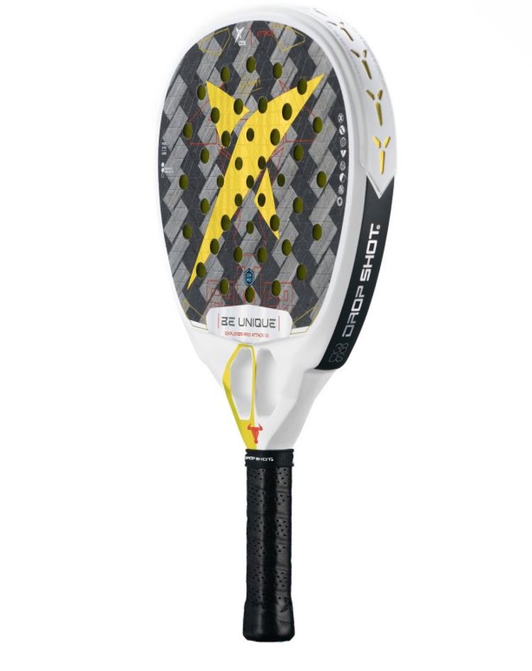 Ракетка для падел тенниса Drop Shot Pala Explorer Pro Attack 1.0. Личный выбор Lucasa Campangolo, подписанный ведущим бразильским игроком! Drop Shot Pala Explorer Pro Attack имеет головку в универсальной форме капли и средний баланс - такая конструкция наилучшим образом сочетает доступ к мощности и контролю. Благодаря этому ракетка подойдет продвинутым игрокам, ищущим высокую производительность с хорошим балансом между динамичной атакующей игрой и точностью с ощущением в защите. Выполнена из углеволокон с косым плетением 24K Twill Carbon, сочетающих гибкость с высокой прочностью. Сердцевина из отзывчивой резины EVA Pro High Density увеличивает доступ к мощности и скорость мяча при отскоке от ракетки. Особая конструкция сердца Power Beam Heart обеспечивает исключительную стабильность при мощных ударах. Применение систем Smart Holes и Cork Cushion Grip дает отличное погашение вибраций, а четко текстурированная поверхность головки 3D Face облегчает создание вращения и дополнительно помогает с контролем. Ракетка продается в элегантной коллекционной коробке с подписью и девизом Lucasa Campangolo.